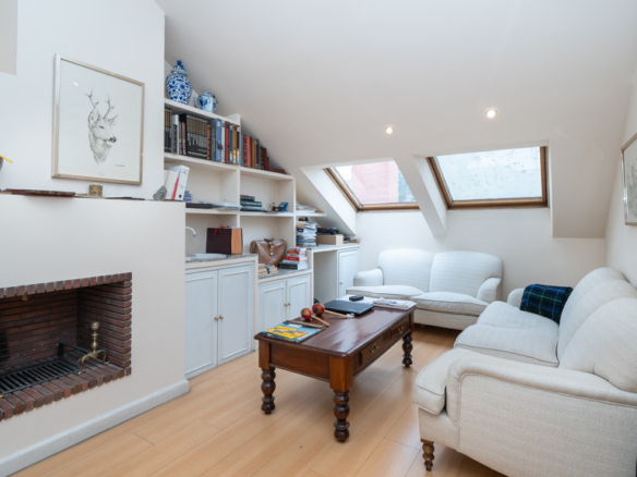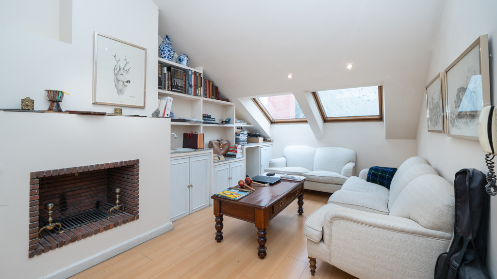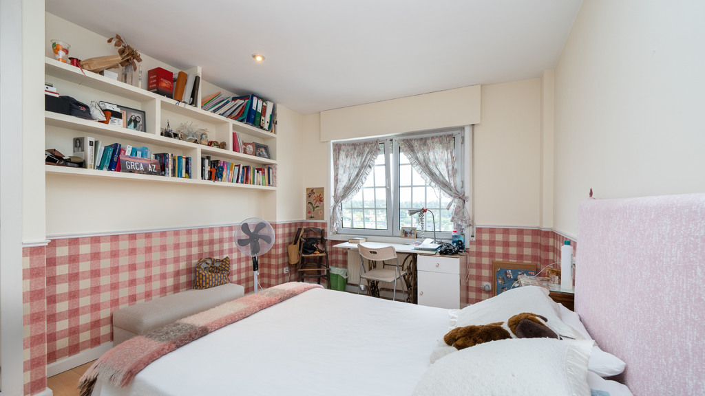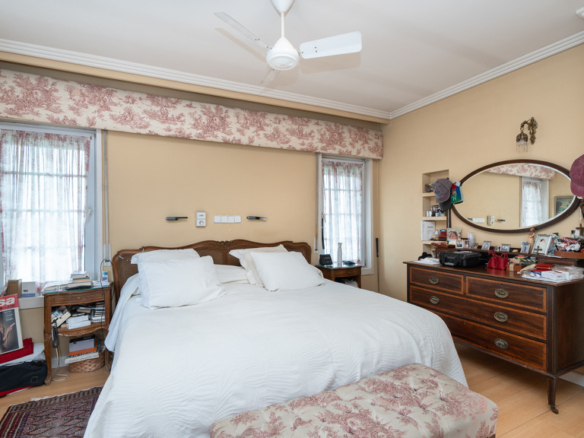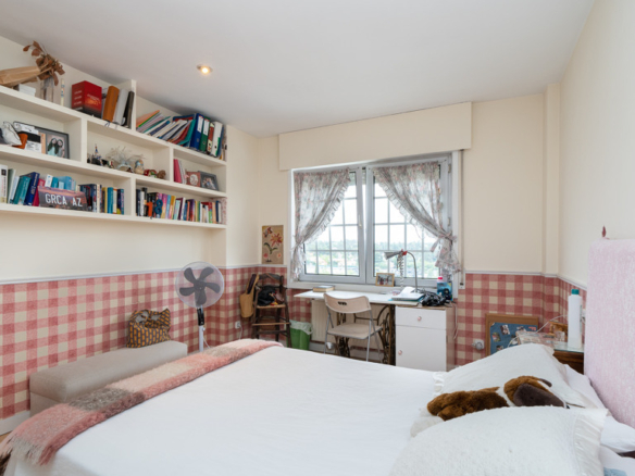 Upstairs, the sleeping quarters offer four spacious and luminous bedrooms. The master suite is a true private retreat, featuring a generous walk-in dressing area, an en-suite bathroom, and access to a delightful loft-style study, ideal as a reading nook or home office. Another bedroom also includes a private bathroom, while the remaining two share a third full bathroom. All rooms are generously sized and enjoy pleasant views.