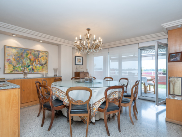 From the moment you enter through its impressive main entrance, the distinguished character of this residence is evident. A welcoming foyer leads to a sculptural staircase and a majestic living room, beautifully divided into three cozy seating areas. An elegant fireplace anchors the space, while large windows flood the interiors with sunlight. The spacious and inviting dining room opens directly onto a charming porch and landscaped garden, where you can enjoy peaceful evenings with unobstructed views of the green surroundings of Puerta de Hierro.