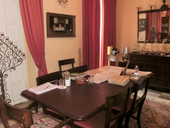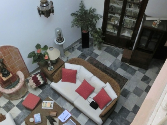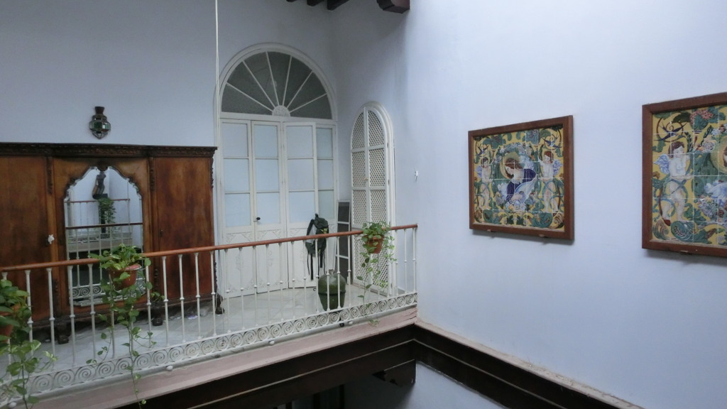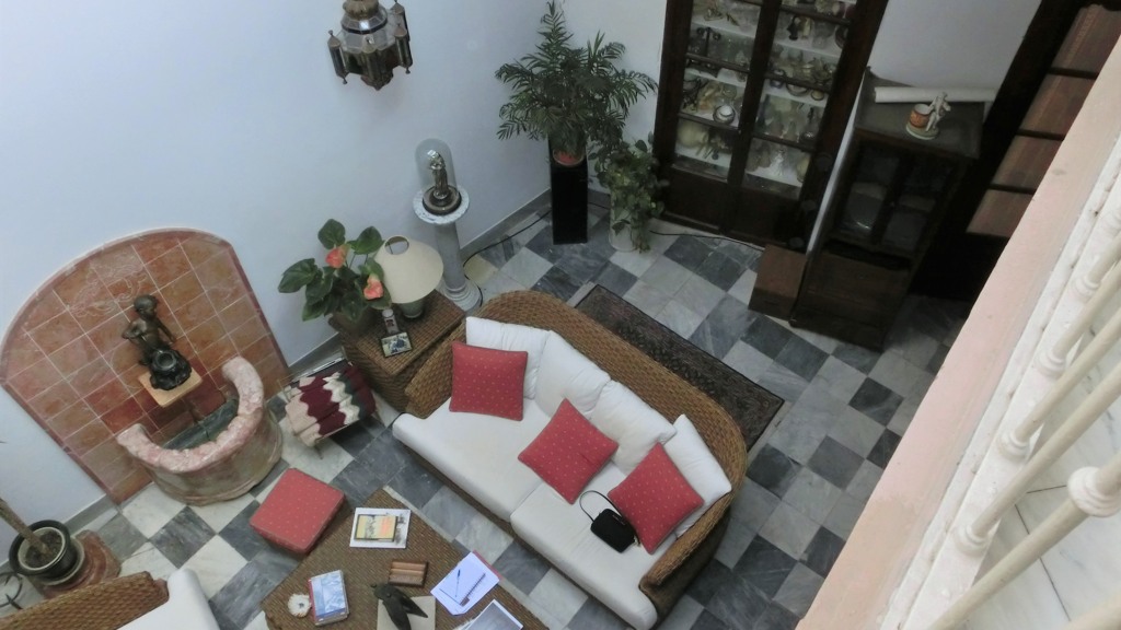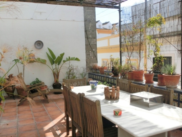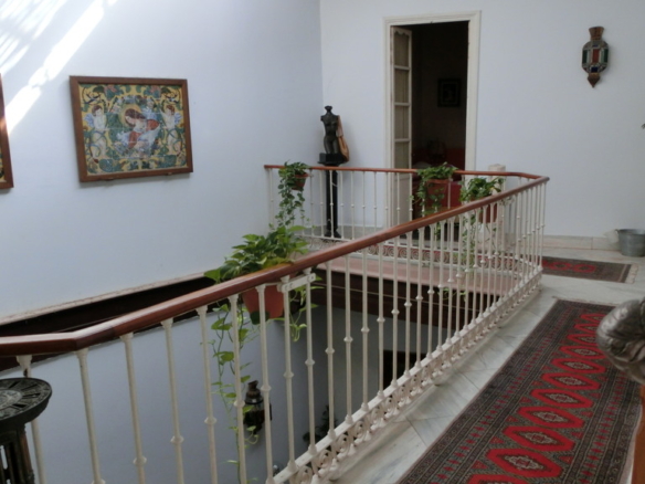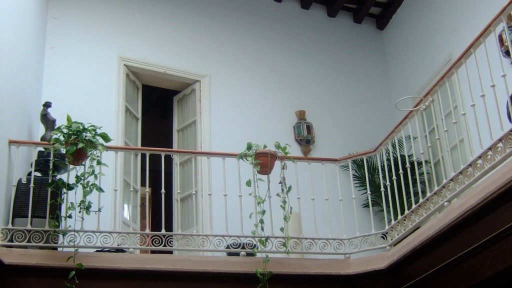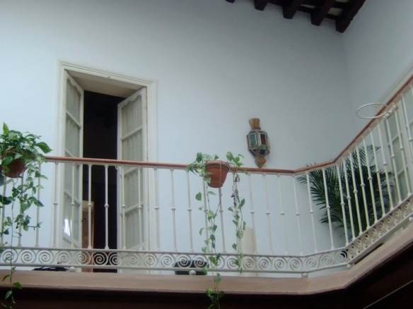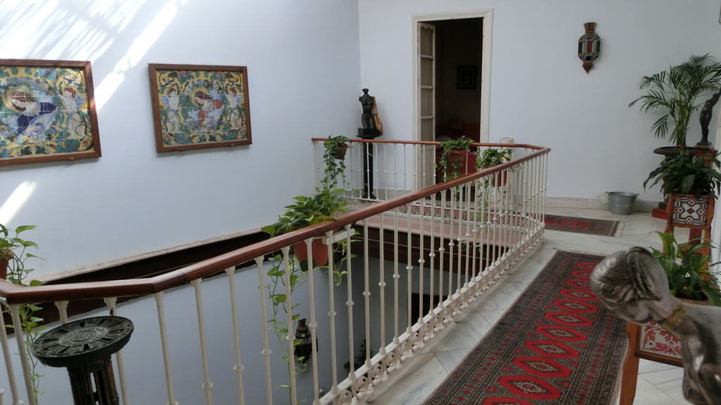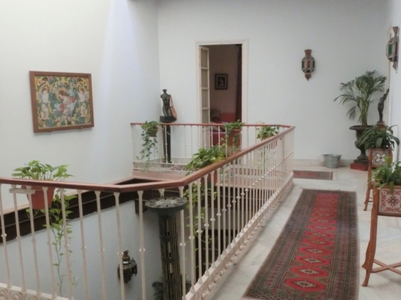 Segun se suben las escalreas de marmol a la planta alta de la casa se divide en dos paprtes, una de ellas tiene un corredor circular con vistas al patio, de ahi se pasa a la sala de estar con chimenea, un dormitorio principal con cierro y balcon, otro dormitorio tambien con balcon, con 2 cuartos de baños, de ahi se sube a un tercer piso donde se encuentra la lavanderia, gran azotea y montera de cristal, donde tiene unas vistas a la calle principal, a las salinas de El Puerto de Santa Maria y se puede ver hasta Sanlucar de Barrameda. A la derecha nos encontramos con cuarto de invitados con salon y biblioteca, puerta de salida a una terraza de cincuenta metros.