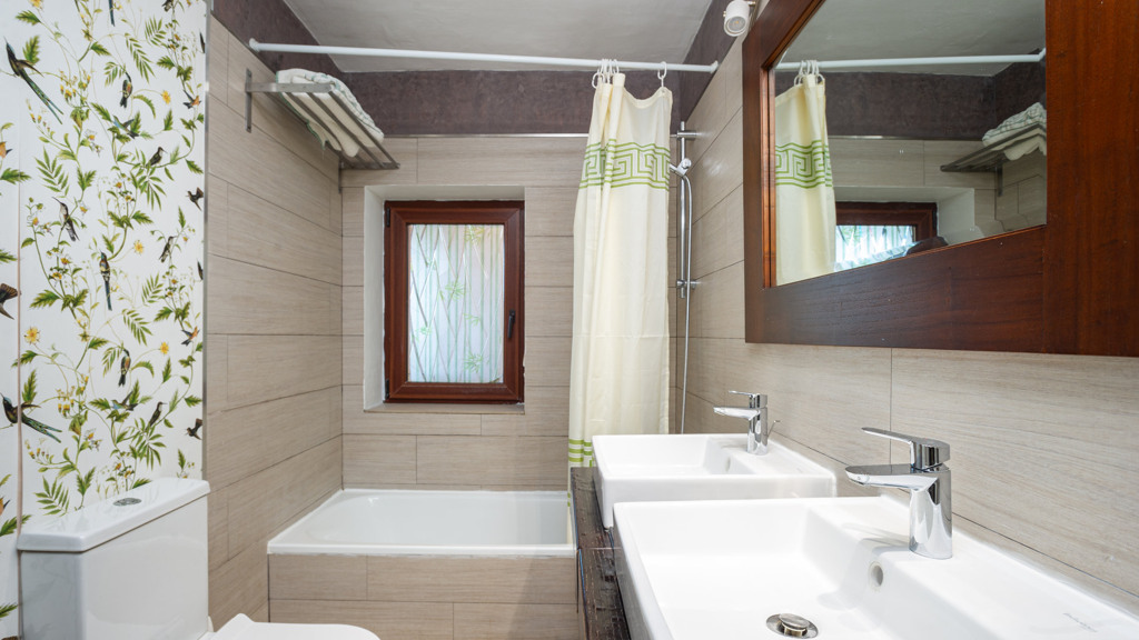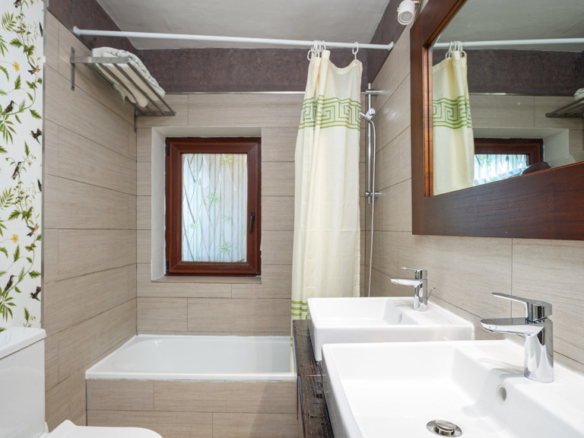 On the first floor we find a spacious living-dining room of 25m2, open kitchen, toilet, porch of 10m2 and a large terrace / private garden with direct access to the pool. The second floor has 3 bedrooms and a complete bathroom.