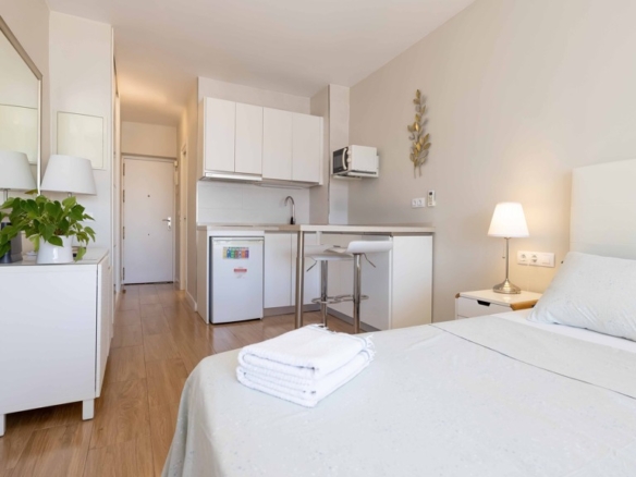 Gilmar Real Estate presents a studio in the heart of Torremolinos, located in the province of Málaga, with a surface area of 29 m², ideal for those looking for a compact, functional property with great potential. This studio stands out for its south-facing orientation, which guarantees excellent natural light throughout the day, and it is in impeccable condition. The property features a private terrace where you can enjoy unobstructed views and moments of relaxation. Additionally, it has a tourist license, making it an excellent opportunity for both personal use and investment.