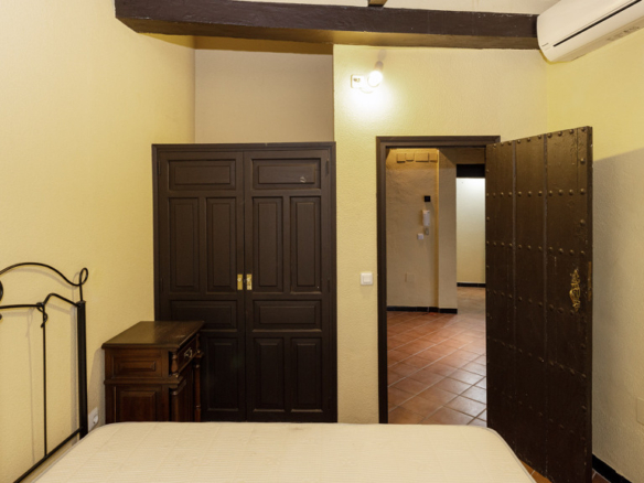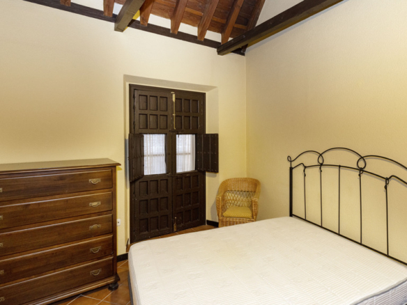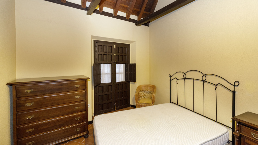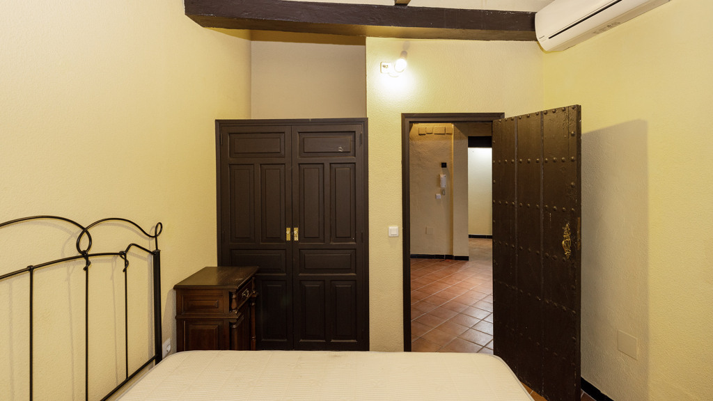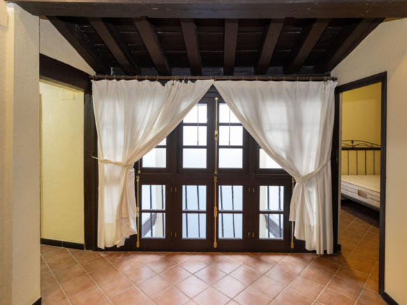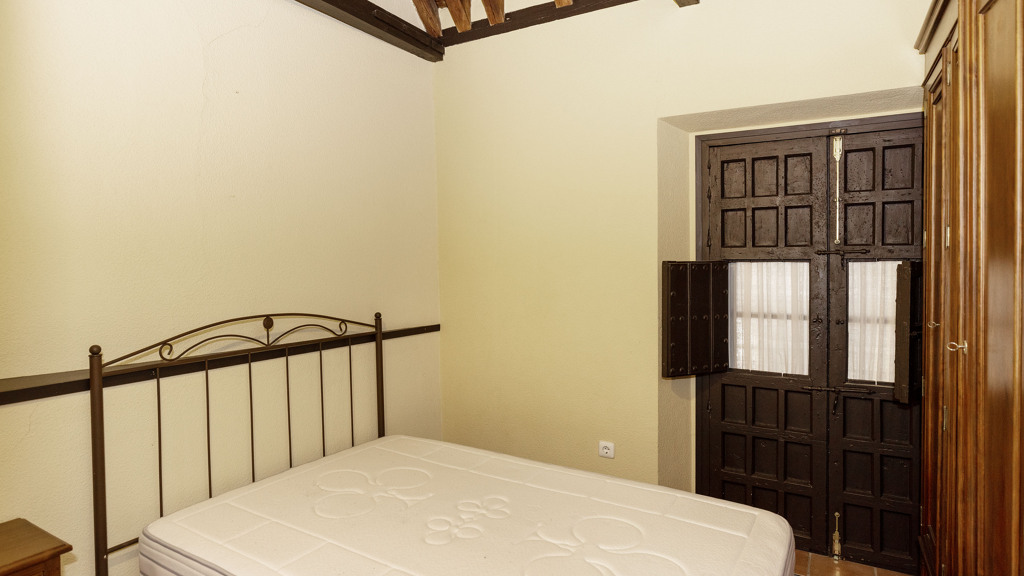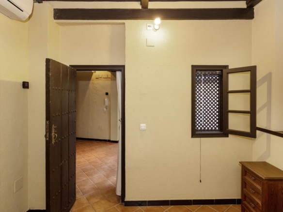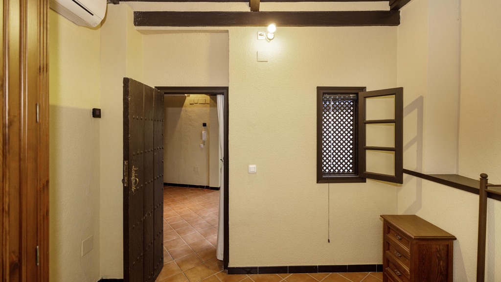 The distribution of the house is divided into three floors plus a roof terrace. On the ground floor, we find a beautiful Sevillian patio with marble floors and a central fountain, covered with montera to provide a cheerful light to this floor. Also, on this floor, we find a large pantry which was previously used as a kitchen, the master bedroom, formerly two independent double bedrooms, and a recently refurbished en-suite bathroom.