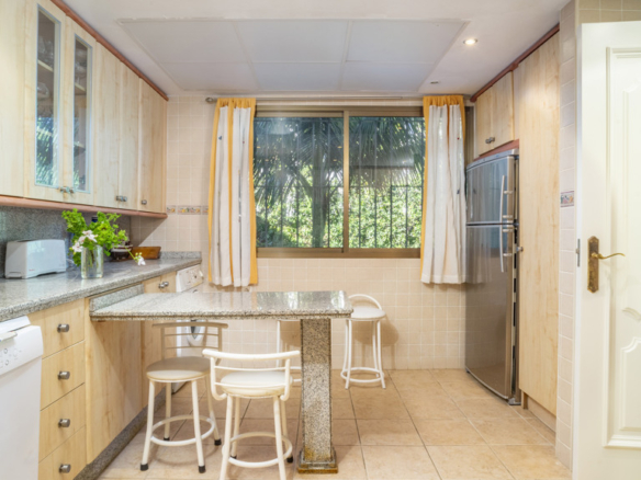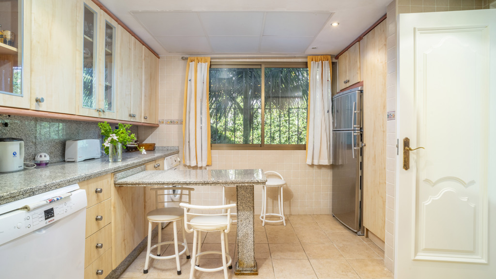 Spread across three levels, it features 4 bedrooms, 3 bathrooms, and a guest toilet, with bright, spacious interiors designed for comfort and privacy. The main living room opens onto a generous terrace overlooking the sea, ideal for entertaining or unwinding, while the private garden and two parking spaces —one underground and one exterior— add convenience and exclusivity.