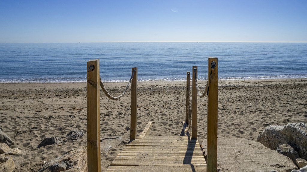 Located on Marbella’s prestigious Golden Mile, this stunning beachfront townhouse offers south-facing orientation and uninterrupted views of the Mediterranean. A rare property that combines elegance, comfort, and a prime location, it is the perfect choice for those seeking year-round sunshine and a privileged lifestyle by the sea.