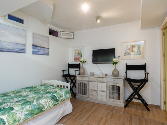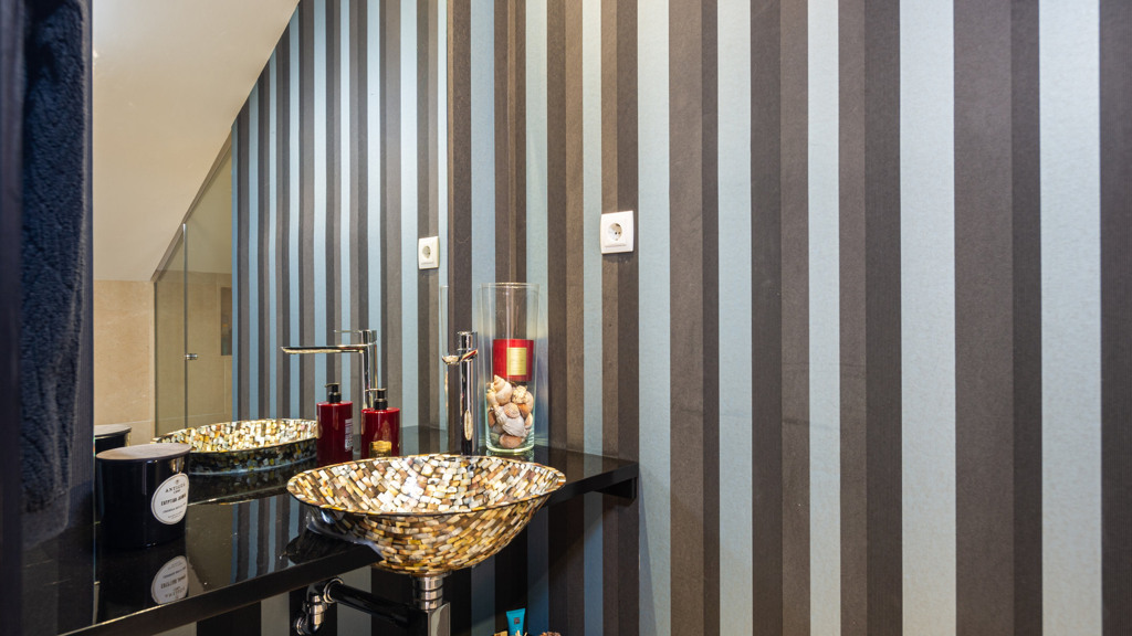 The layout of this house is ideal for large families, with a total of 5 bedrooms and 4 bathrooms. On the first floor, there are three bedrooms and two bathrooms, as well as a terrace overlooking the communal areas. The second floor comprises a bedroom, a bathroom and a small terrace. In the basement you will find a small apartment with bedroom, bathroom and kitchen, perfect for staff, and a garage with space for two cars.