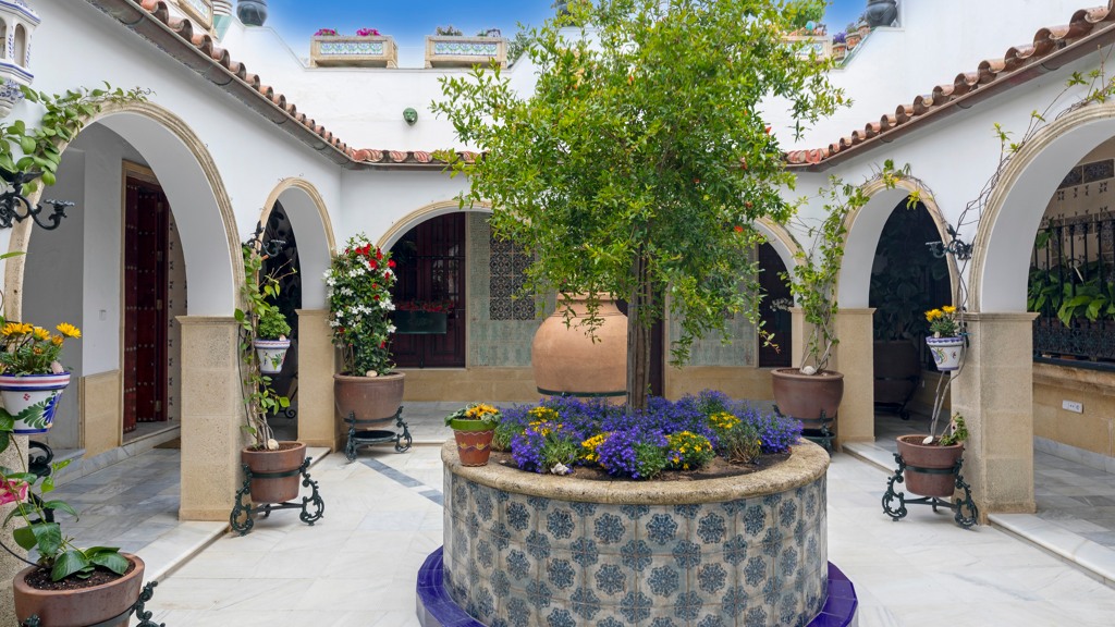 Gilmar offers you this spectacular palace house located in the heart of Puerto de Santa María. The house dates back to 1732, but has been completely refurbished with extraordinary taste by the owner. As many of the original elements as possible have been preserved, such as the exposed wooden beams, marble floors, tiles, mahogany and Flanders pine doors, etc. The rest has been replaced with original elements rescued and carefully selected from the rubbish dumps of other old houses, resulting in this spectacular home. Other decorative and ornamental elements have been brought from countries as far away as India, which the current owner has been able to combine with excellent taste and mastery.