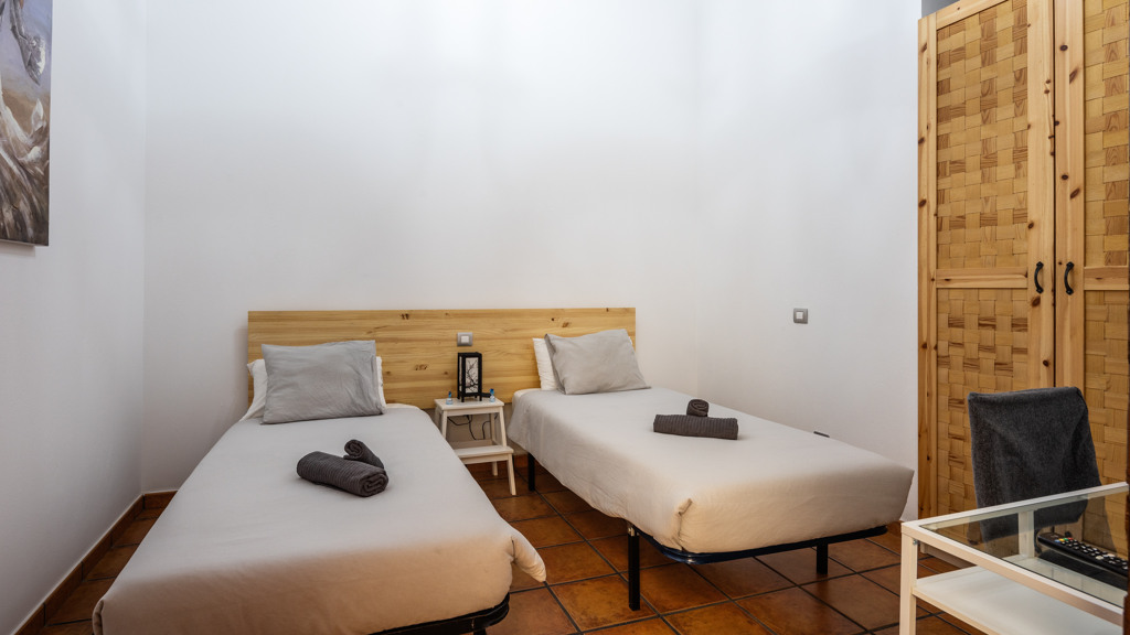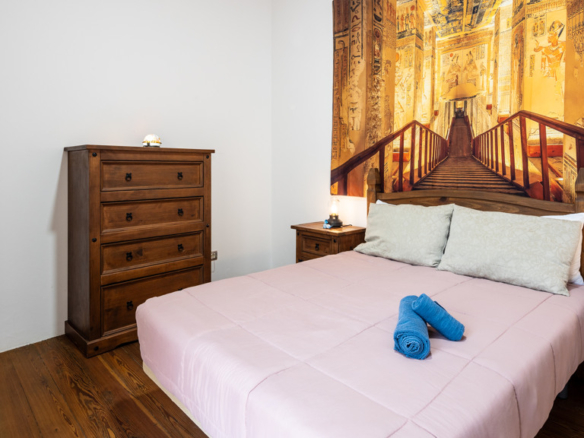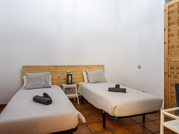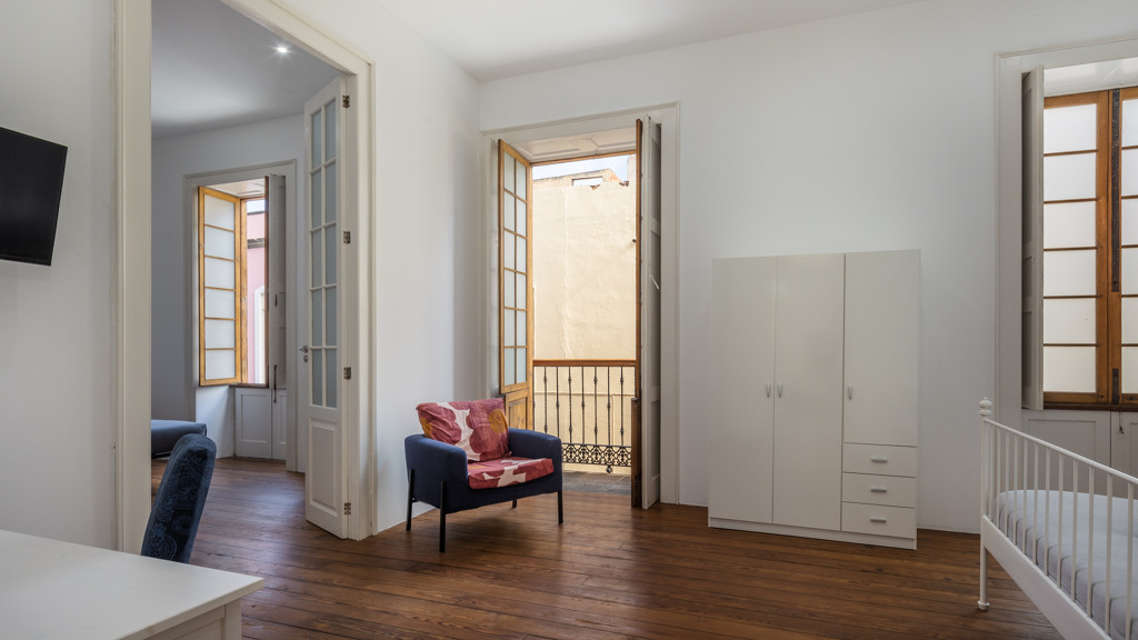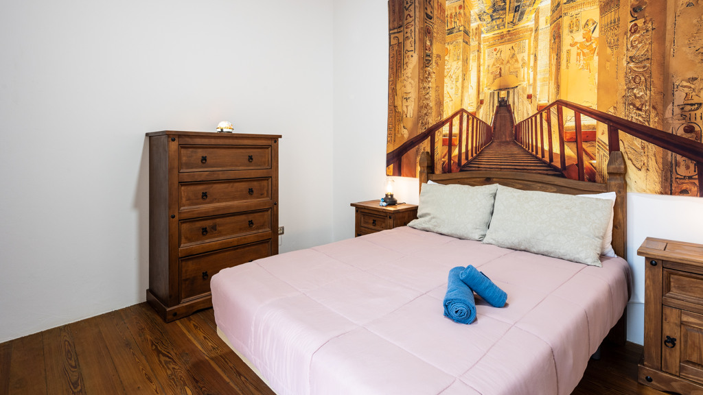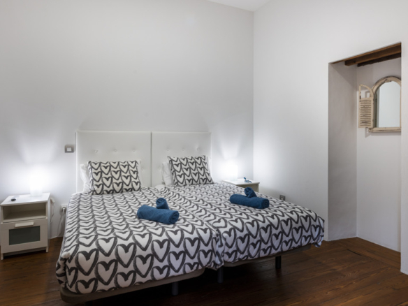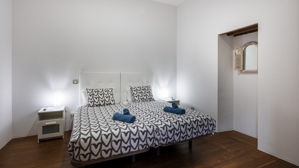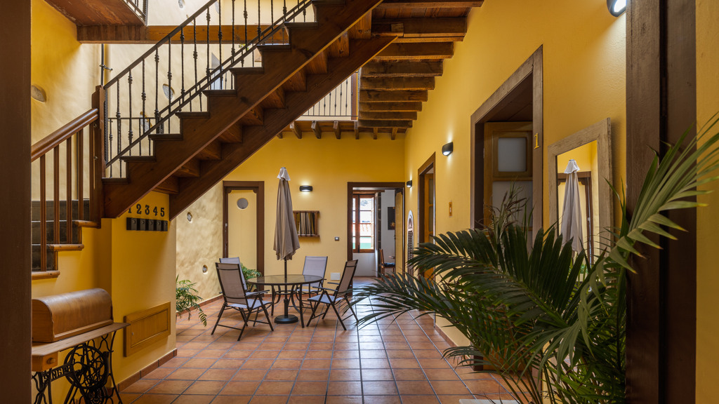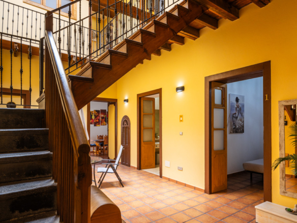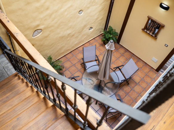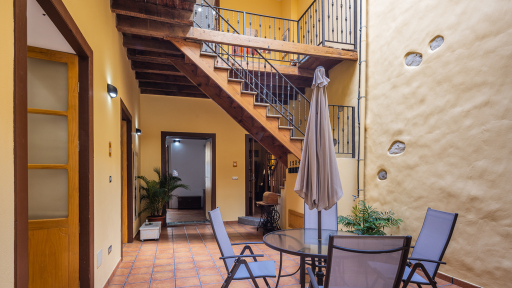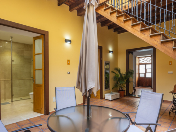 From the central courtyard and through a grey stone staircase, you reach an open gallery and from here, you can access the main part of the house. The main bedroom is a double room with access to another bedroom. Large windows and a wrought iron balcony allow light to enter each of the spaces in this area.