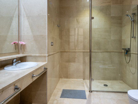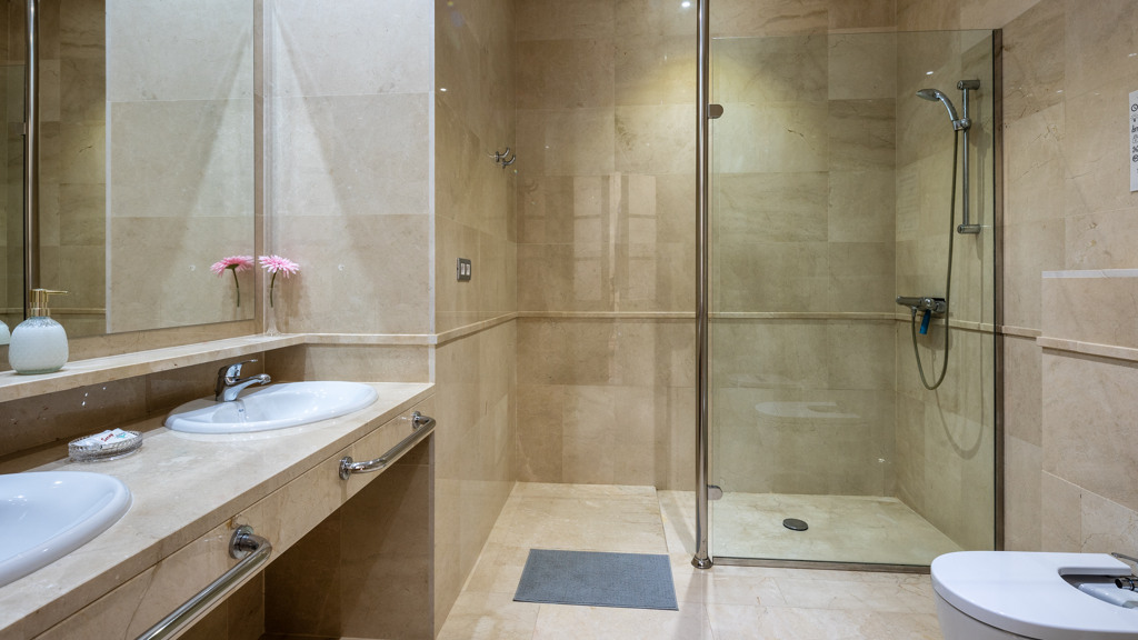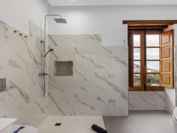 Through the gallery, the other three bedrooms open onto the courtyard creating a cosy atmosphere. This floor has a generous bathroom with a hydro-massage bathtub and shower. A large window overlooking the sports area and swimming pool of the municipality presides over this room.