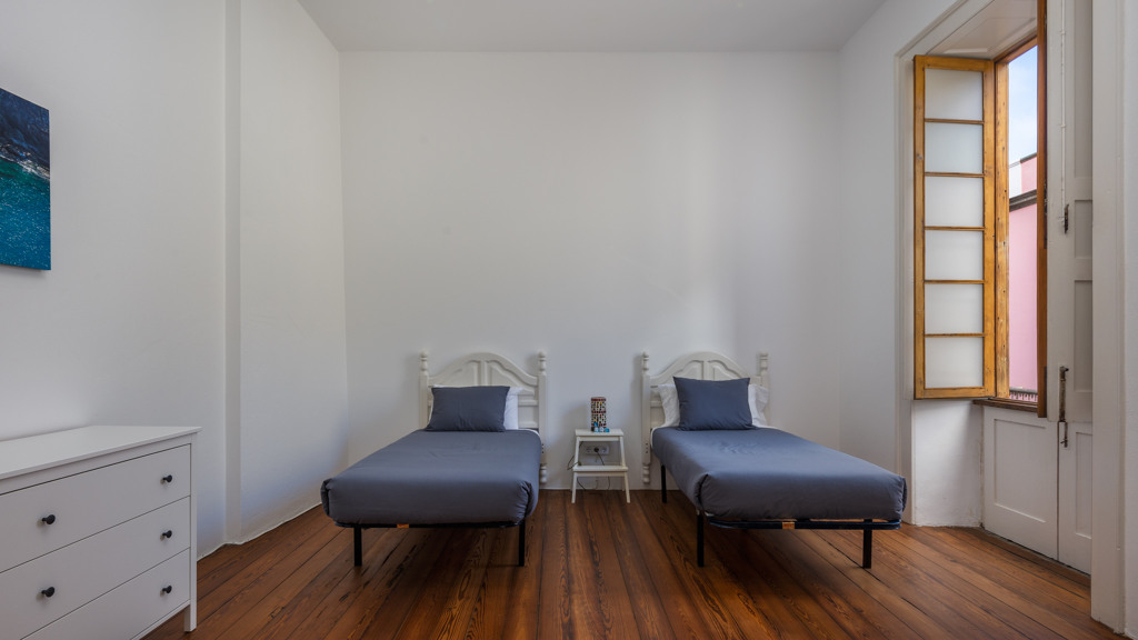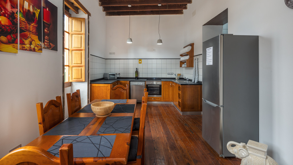 The ground floor has a generous living room, a bedroom, a large bathroom and a spacious kitchen with natural light and ventilation. From this same room there is access to a pantry and to the lower part of the kitchen with exit and views towards Eusebia de Armas street.
