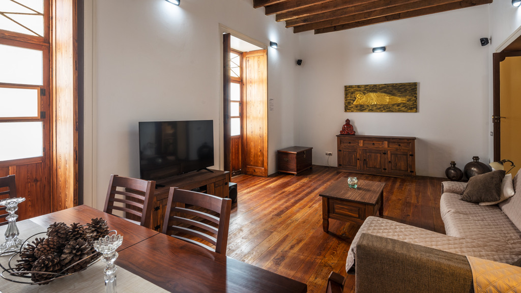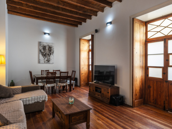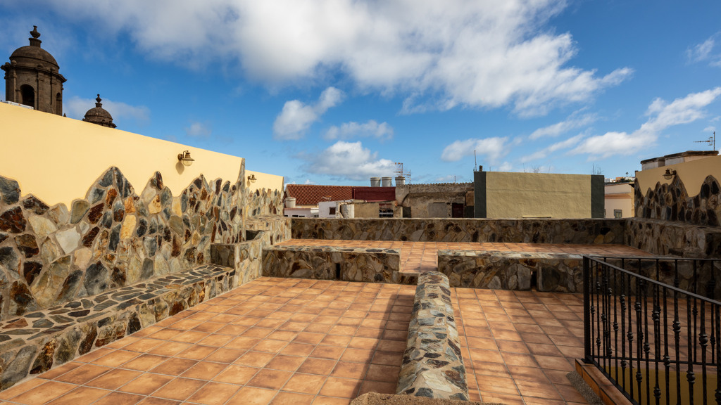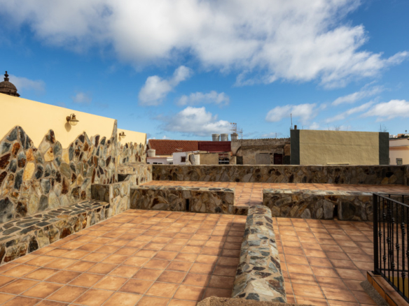 GILMAR presents this beautiful house from the beginning of the 20th century completely restored in the historic centre of Santa María de Guía, a few steps away from the neoclassical style Iglesia Matriz. This centenary two-storey building, built around a central courtyard and with a U-shaped floor plan, is part of the catalogue of properties of the Historic-Artistic Ensemble of Guía.