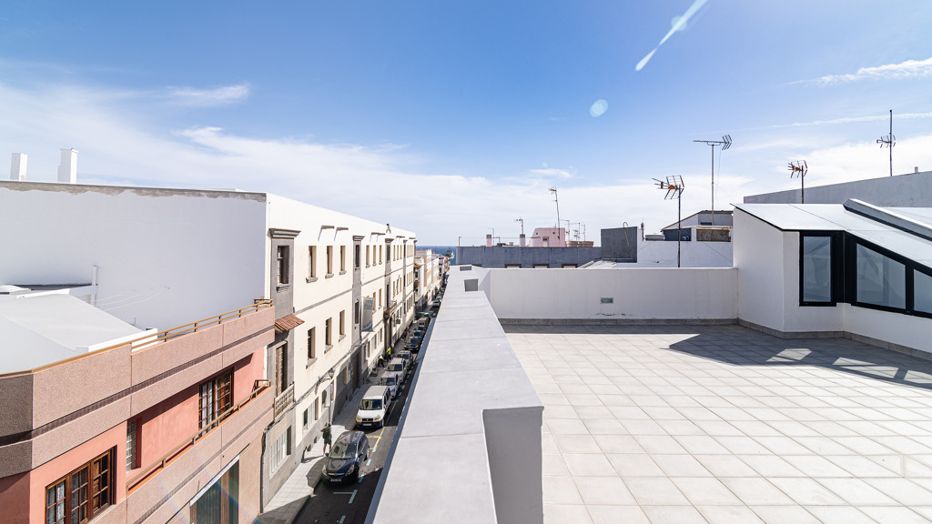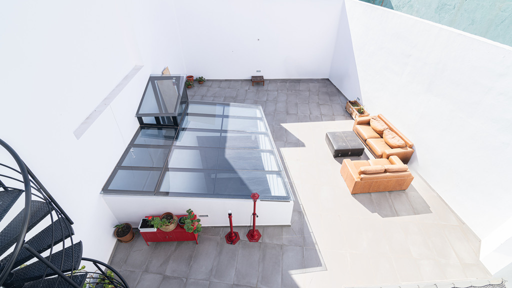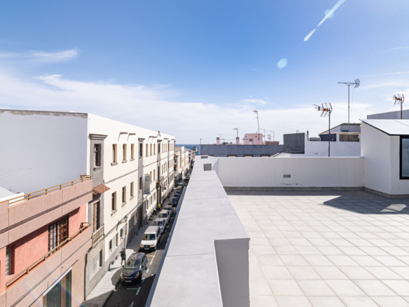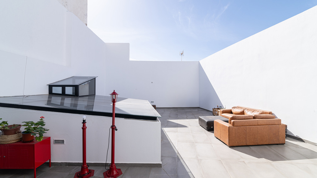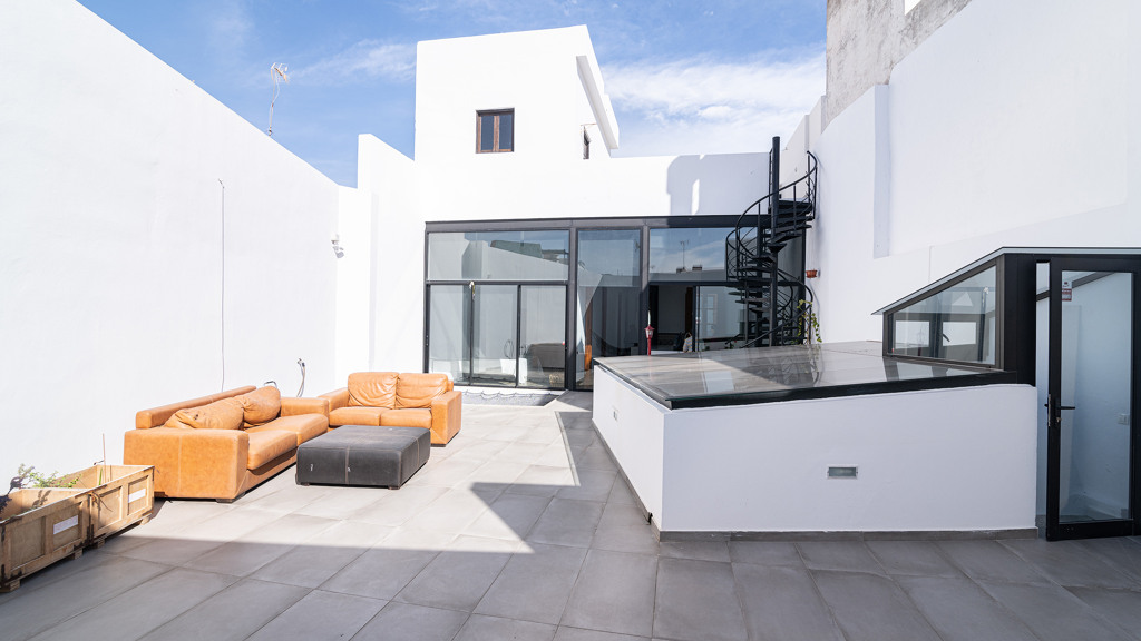 On the first floor awaits an impressive 160m with three bedrooms, two bathrooms, a toilet, a spacious living room, a fully equipped modern kitchen and a patio of 80 square meters, where you can enjoy moments of relaxation with total privacy. The high quality materials used in the construction and the designer finishes make this floor a really special place. A Canarian balcony in the living room adds to the traditional charm of the house.