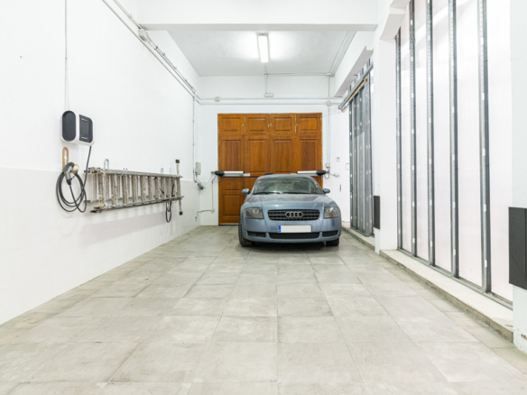 On the entrance level there is a large garage with automatic door and electric car charger. Large office area with kitchen, toilet and a patio. It also has a second diaphanous work area with multiple possibilities which in turn connects with the first floor. The garage area can accommodate between 4 and 5 cars.