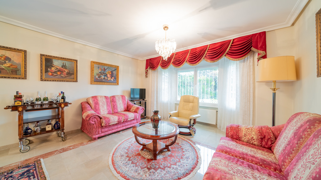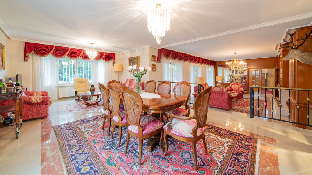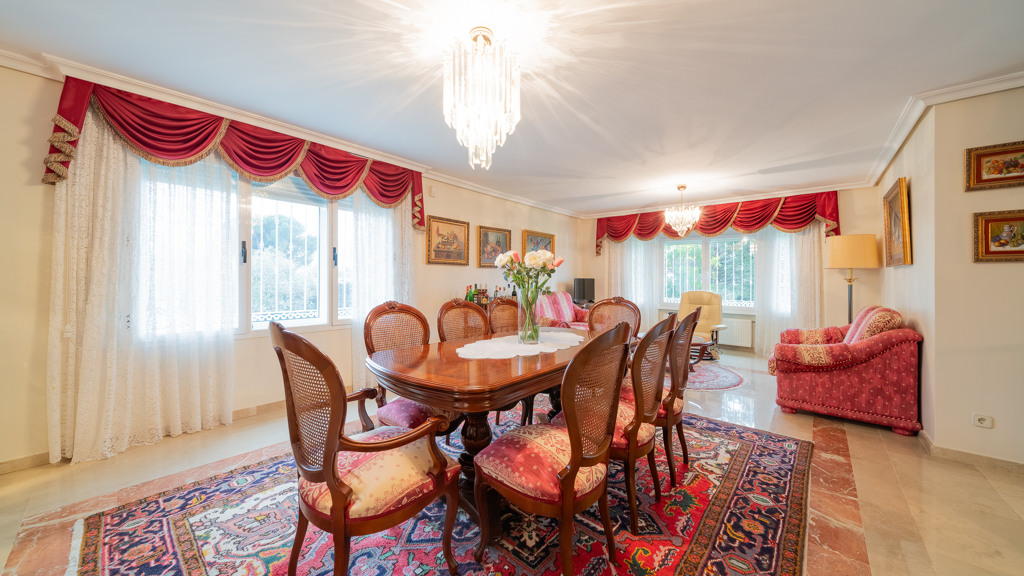 GILMAR Zona Norte presents a magnificent villa in Prado Norte, characterized by its high-quality construction and spacious, light-filled rooms. The villa sits on a flat plot of over 3,600 m2 with a meticulously maintained garden featuring mature trees.