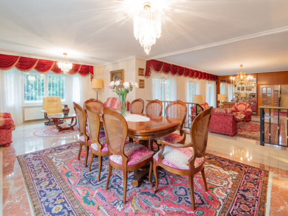 The basement houses the staff quarters with a bathroom. Also on this floor is a beautiful recreation room for celebrating with friends and family, complete with an exceptional wine cellar. The utility room and a very large garage with space for four cars complete this floor.