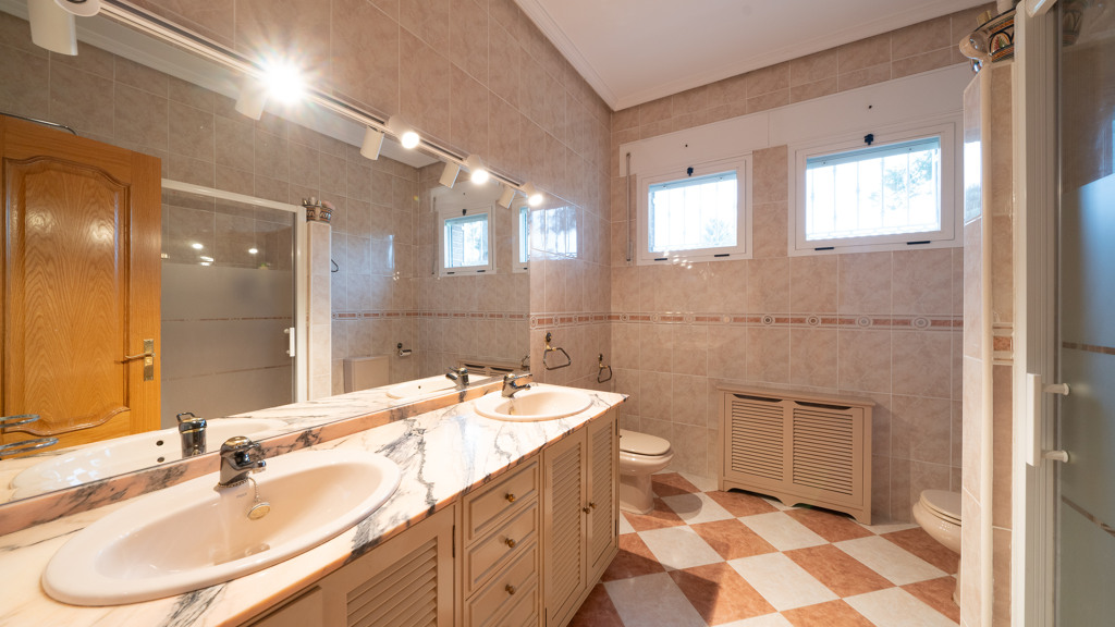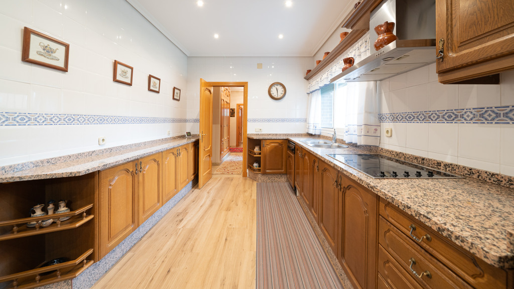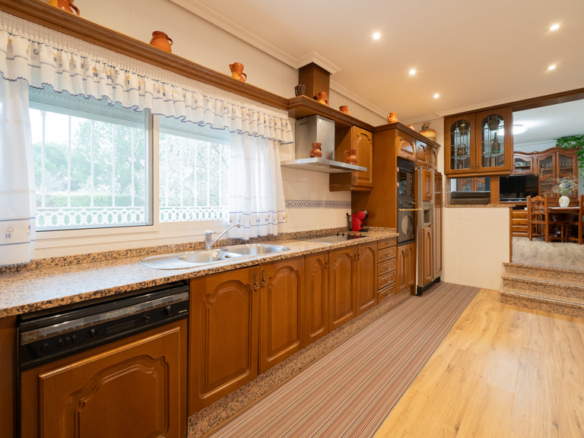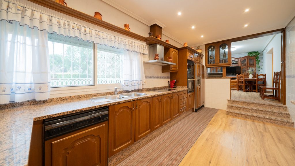 From the entrance hall, you enter the living-dining room with direct access to a beautiful porch, the kitchen, a sitting room, a guest toilet, and an en-suite bedroom for guests.