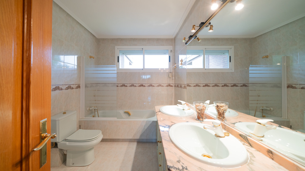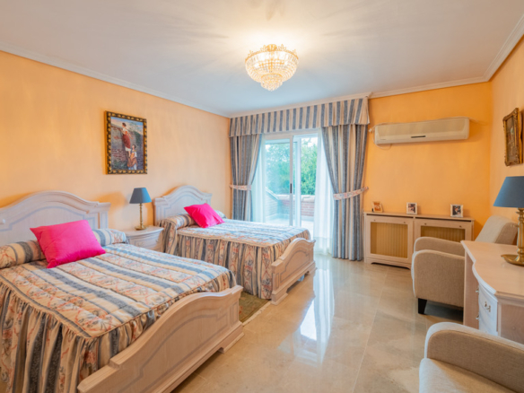 The first floor is dedicated to the private area with the master suite featuring a terrace, dressing room, and bathroom, and three very spacious bedrooms that share a bathroom.
