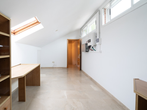 The attic is an open-plan space that can be used as a playroom or office.