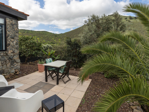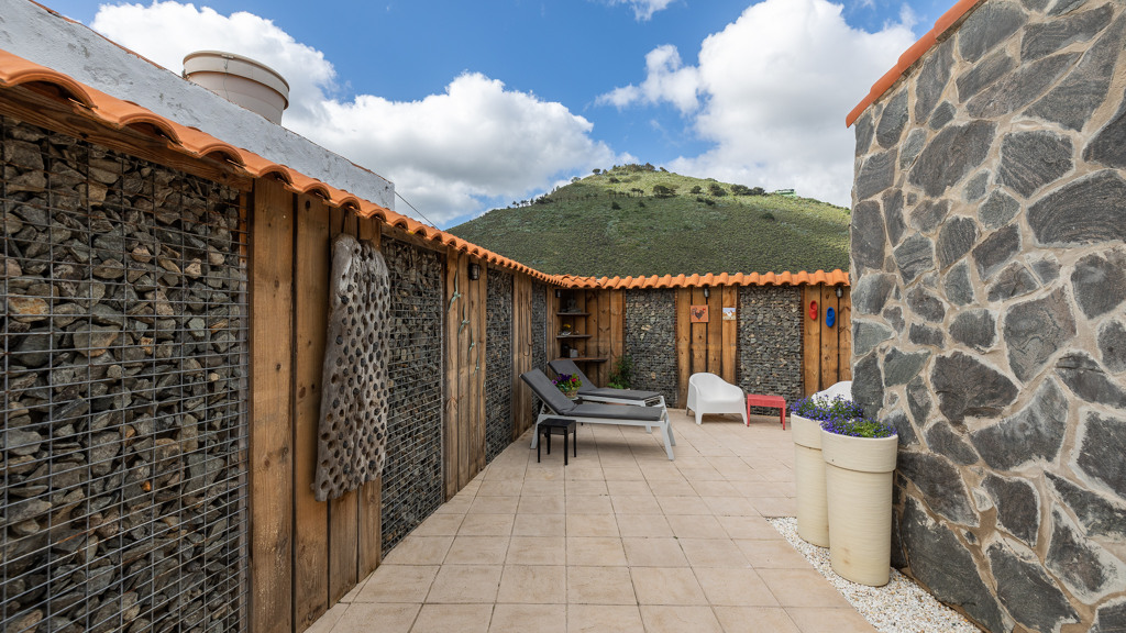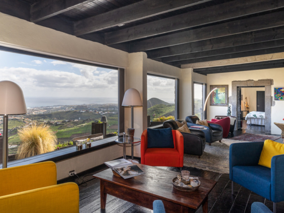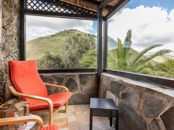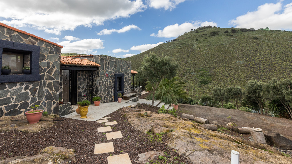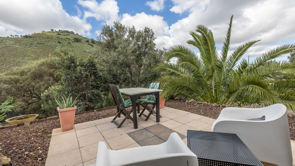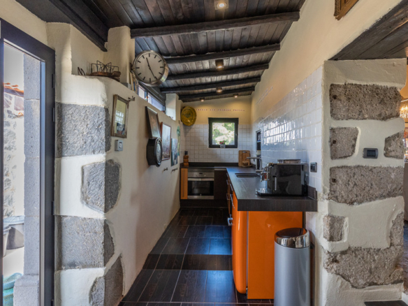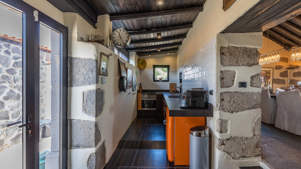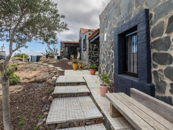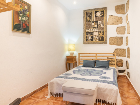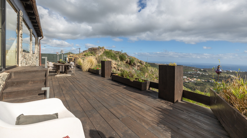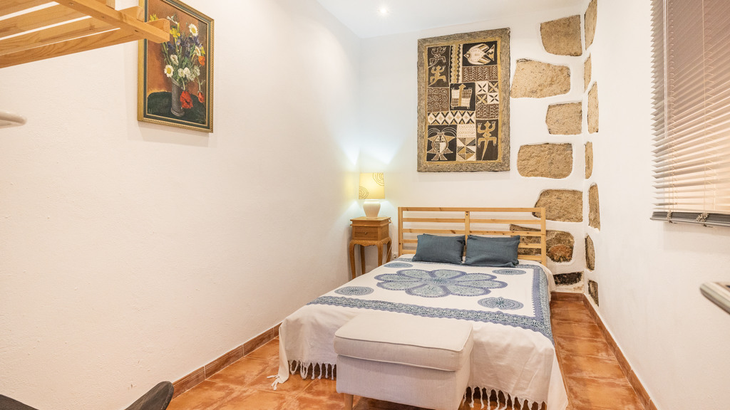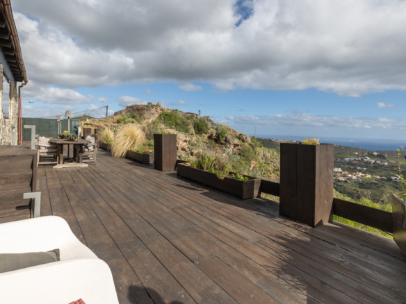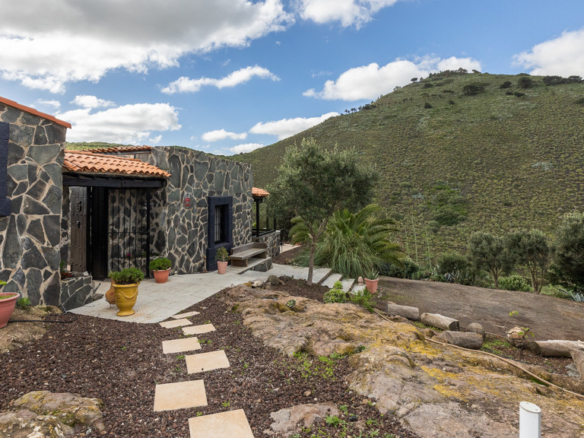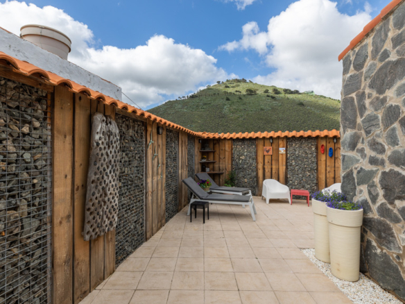 The property is divided into a main house and a flat, both connected by a common terrace. A wooden door defines the main entrance. We enter the main house through the kitchen, with office and pantry, connected to the large dining room open to the living room with access to the terrace. The terrace overlooks the views to the east of the island, enjoying incredible views over the sea. The main living area has a master bedroom with dressing room and bathroom en suite. Office area and living room complete the house. The refurbishment has sought to highlight the original elements such as the stone floor, the woodwork and the Canarian stone ashlars. To the original renovated elements, the best materials have been added in the renovation to achieve quality and comfort in every room.