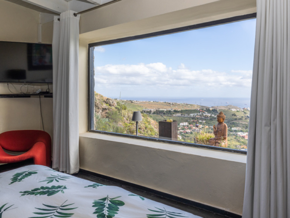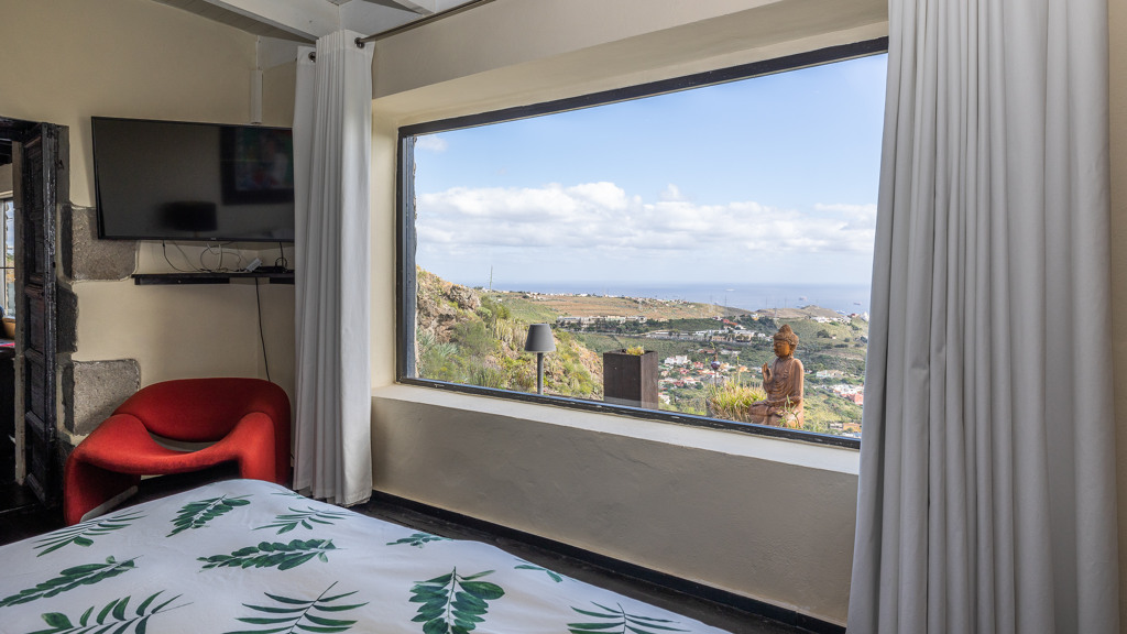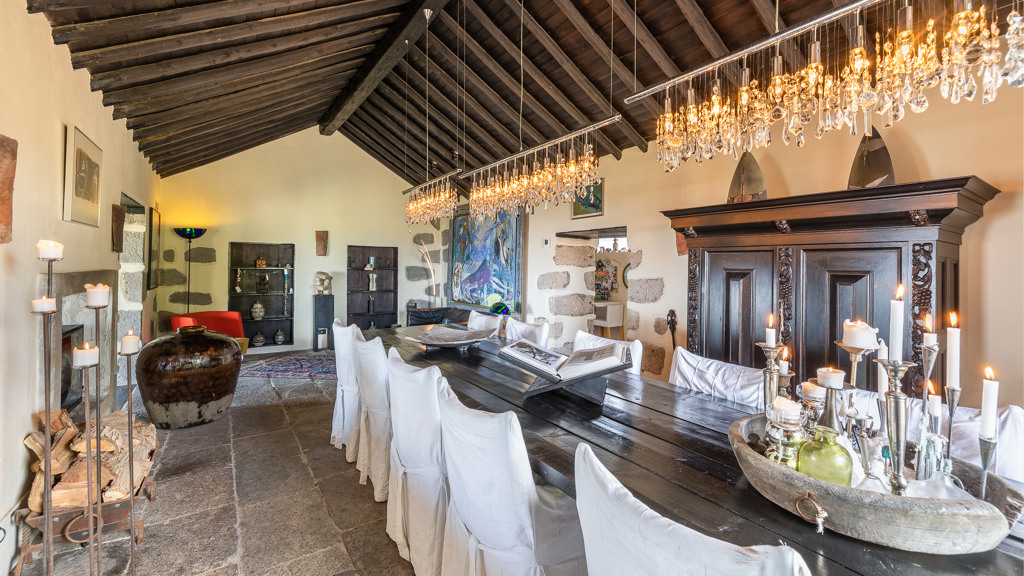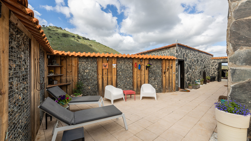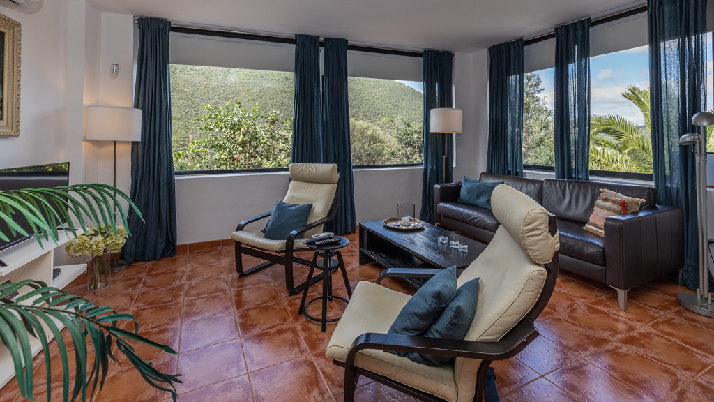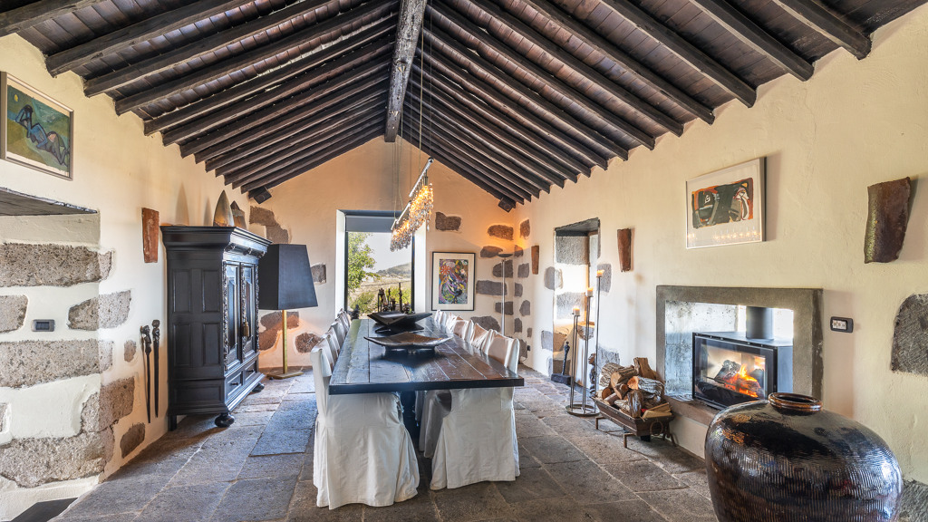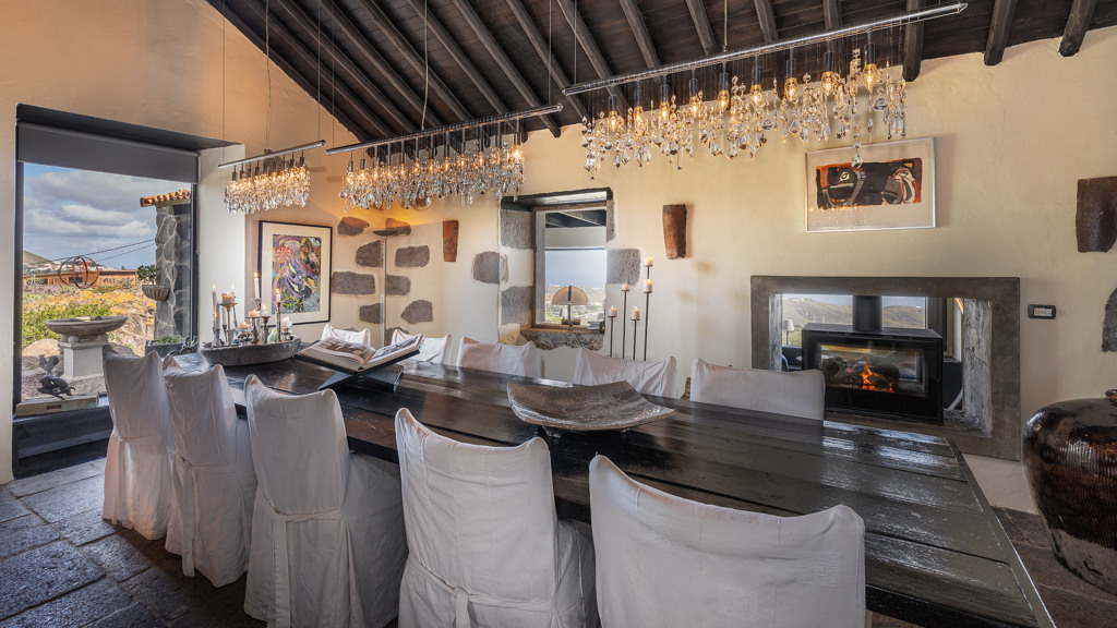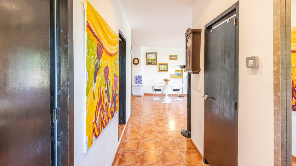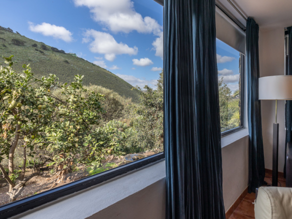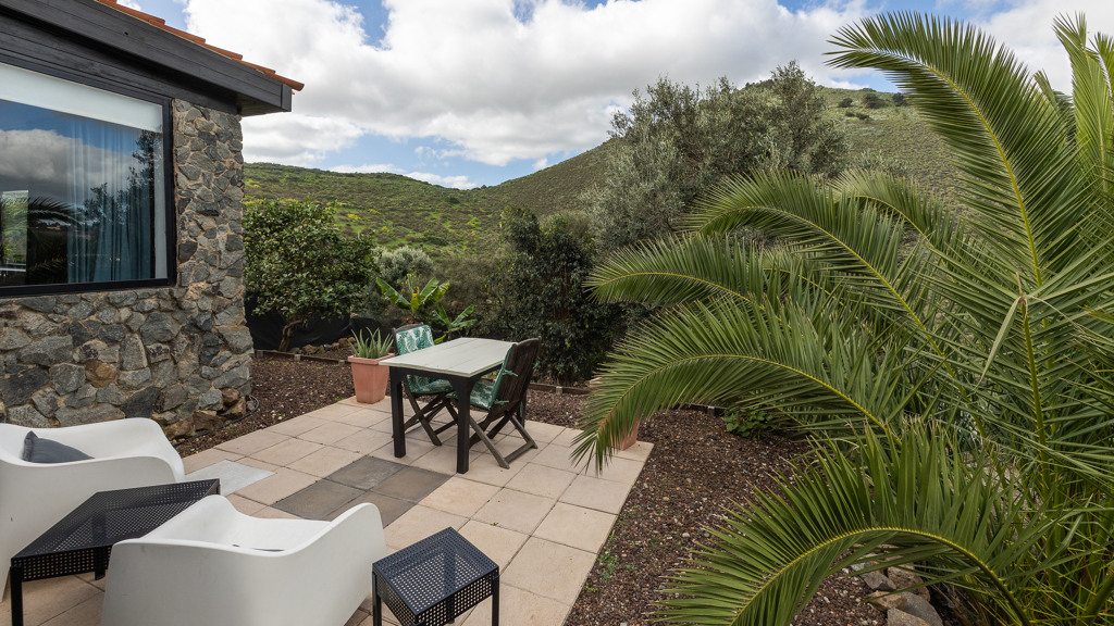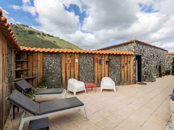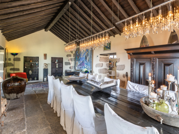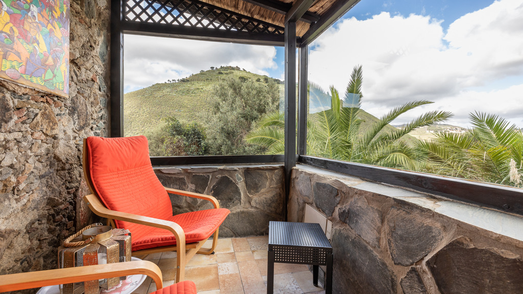 The property is divided into a main house and a flat, both connected by a common terrace. A wooden door defines the main entrance. We enter the main house through the kitchen, with office and pantry, connected to the large dining room open to the living room with access to the terrace. The terrace overlooks the views to the east of the island, enjoying incredible views over the sea. The main living area has a master bedroom with dressing room and bathroom en suite. Office area and living room complete the house. The refurbishment has sought to highlight the original elements such as the stone floor, the woodwork and the Canarian stone ashlars. To the original renovated elements, the best materials have been added in the renovation to achieve quality and comfort in every room.