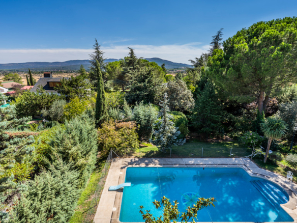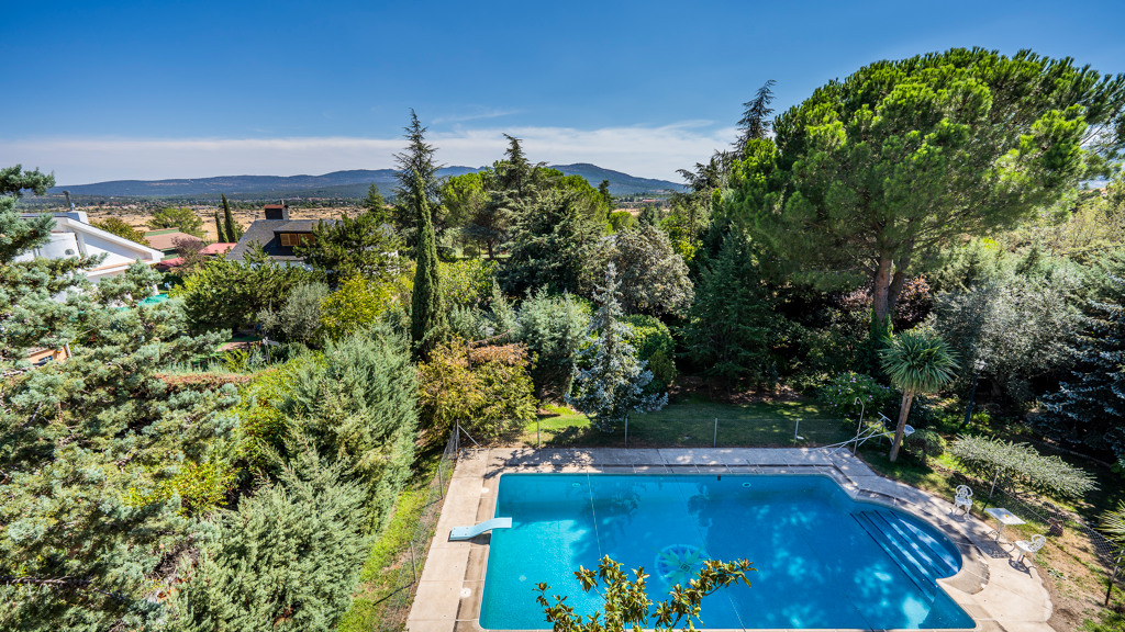 Discover this impressive detached villa with swimming pool located in Becerril, a privileged enclave in the northwest of Madrid surrounded by Naruraleza . With 516 m2 built and located on a generous fully consolidated plot of 1,845 m 2, this property combines spaciousness, comfort and a design designed to enjoy every space. Distributed over three floors, the villa offers 8 bedrooms, 9 bathrooms, 2 living rooms and a large kitchen, plus multiple additional rooms that elevate its functionality and exclusivity.