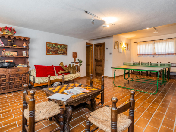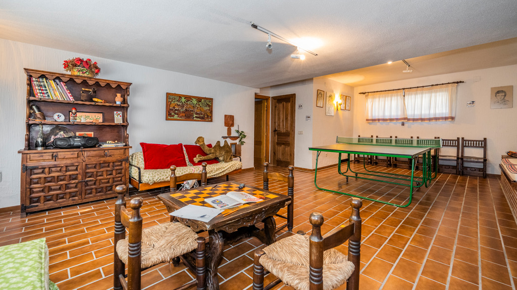– **Basement:** You will find a garage with capacity for three vehicles, a storage room, a toilet, a boiler room, sauna with shower, pantry, a wine cellar and a games room with fireplace, perfect for family entertainment.
