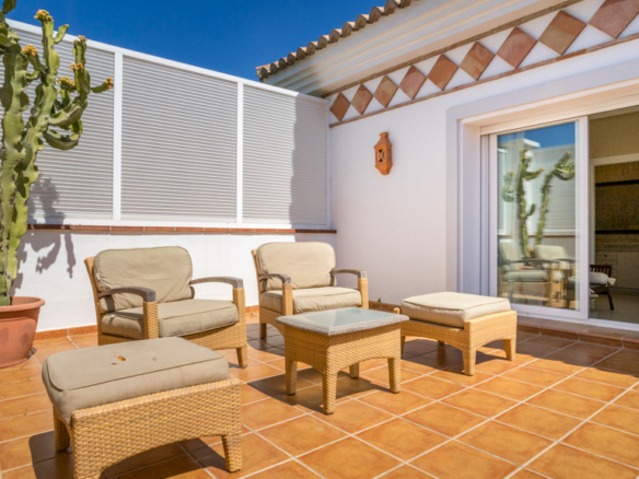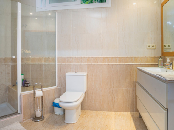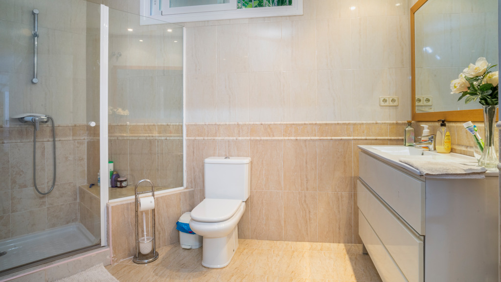 On the second floor you will find three en-suite bedrooms, each with its own private bathroom. From the terrace on this floor, you can enjoy panoramic views stretching all the way to the sea. In addition, the property has a large covered terrace that connects all the rooms, providing a perfect space to relax and enjoy the Mediterranean climate.