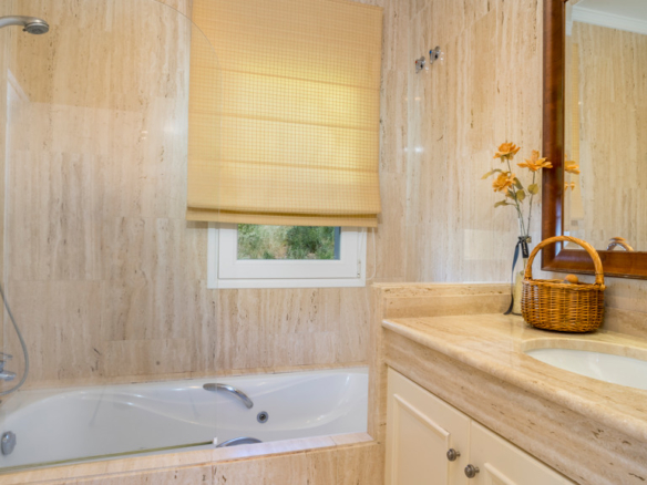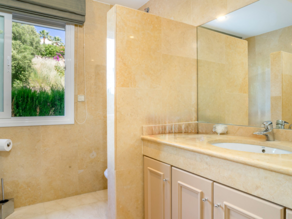 Belonging to the affluent municipality of Benahavís, the surrounding roads and vegetation are very well maintained. Security cars patrolling the area provide peace of mind for residents. Due to the low density of properties, the area is very quiet and yet the A7 highway that runs east-west along the Mediterranean coast is only a 10 minute drive away. A Mercadona supermarket is a 4 minute drive away and the charming culinary village of Benahavís is an 8 minute drive up the hill along the banks of the Guadalmina river. The iconic Spanish restaurant ‘Los Abanicos’ is a must visit, but the village punches above its weight in terms of superior culinary diversity.