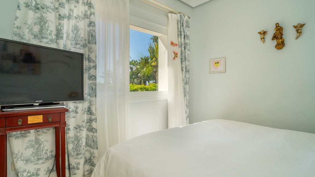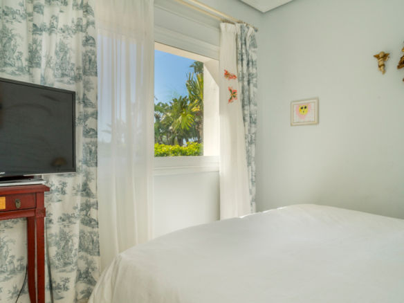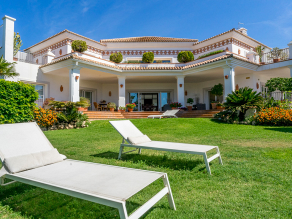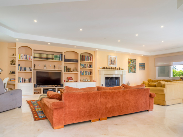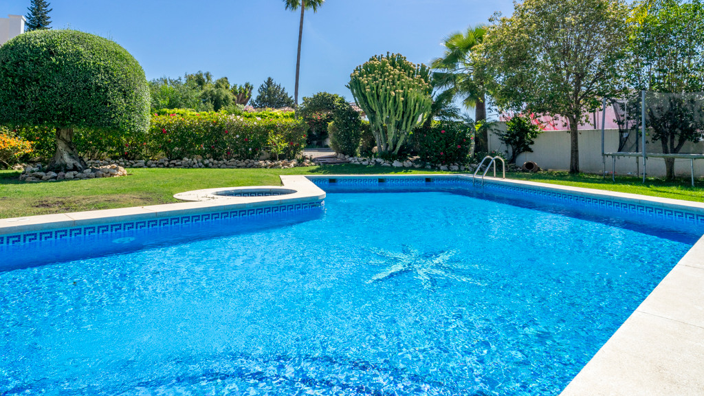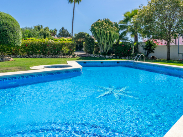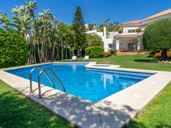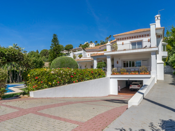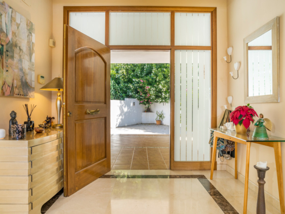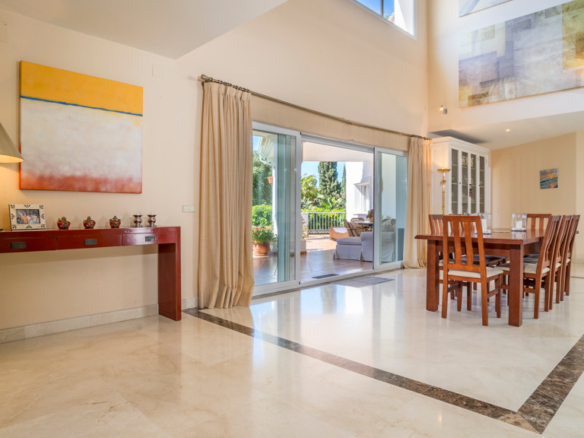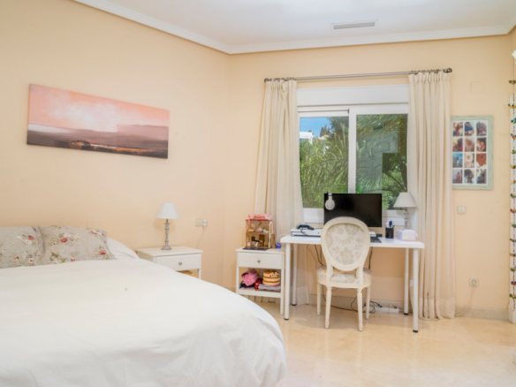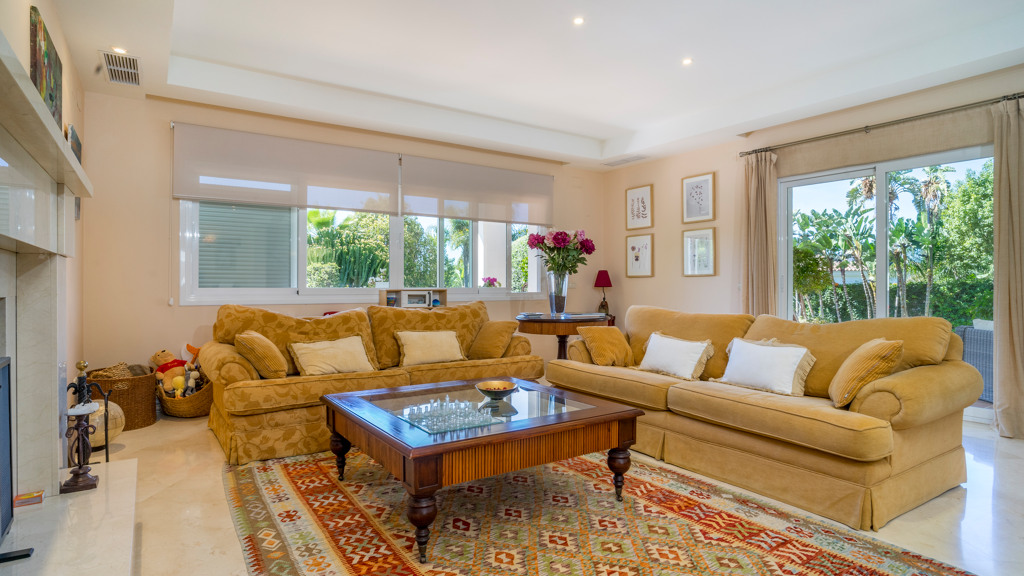 The east façade of the villa sits on a large, mature and immaculate sloping garden. An automatic sprinkler irrigation system nurtures the lush vegetation consisting of flowers as well as cacti, palms, frangipani, citrus, mango and avocado trees. The bedrooms and bathrooms overlook this beautiful garden that borders the fairways of the Atalaya golf course in full view, as well as a lake, the mountains and Hole 3.