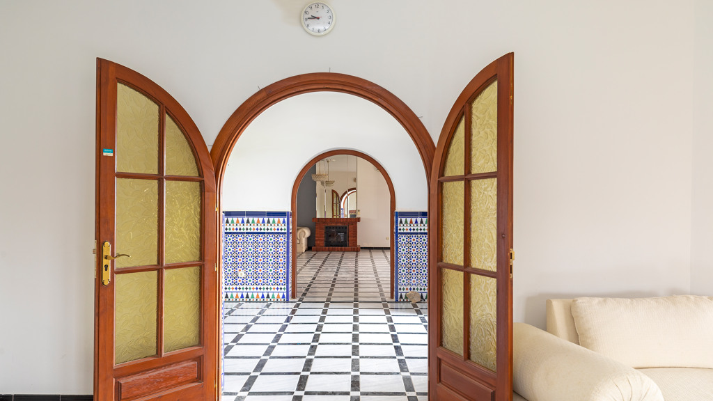 Main residence: Features two spacious living rooms with fireplaces, a central hall with ceilings over five meters high (perfect for a double-height design), four bedrooms (two en suite), and four bathrooms in total. A large terrace, lush garden, and private pool complete this oasis of relaxation.