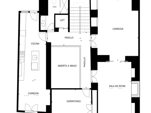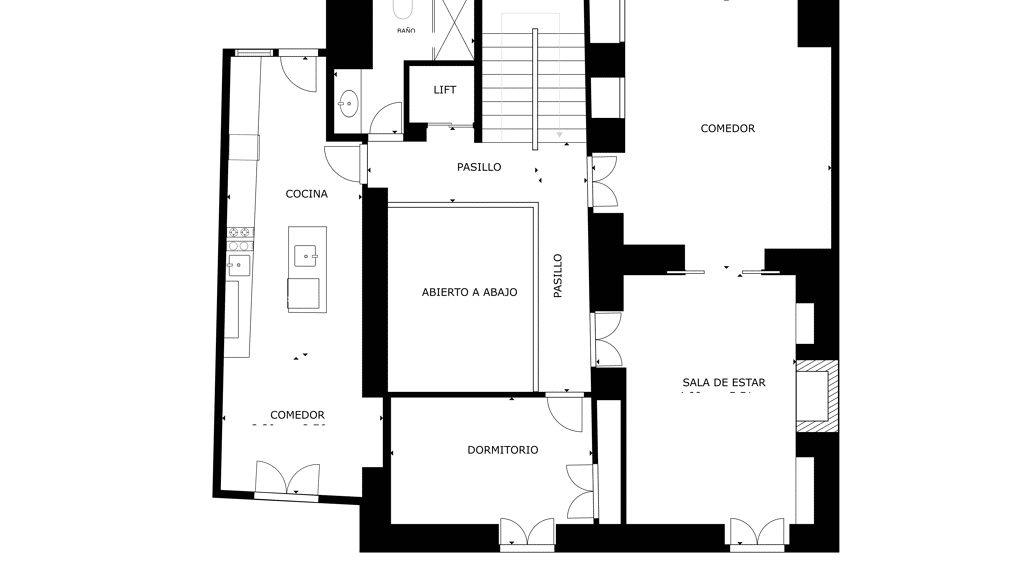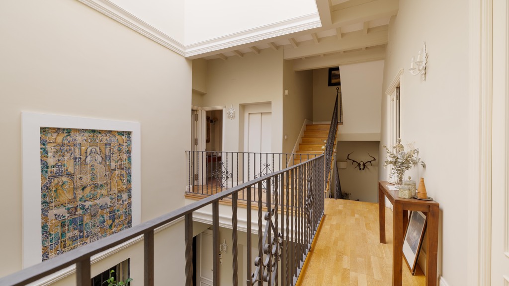 An impressive central courtyard, which not only brings in plenty of natural light, but also becomes the heart of the property, creating an elegant and welcoming atmosphere.