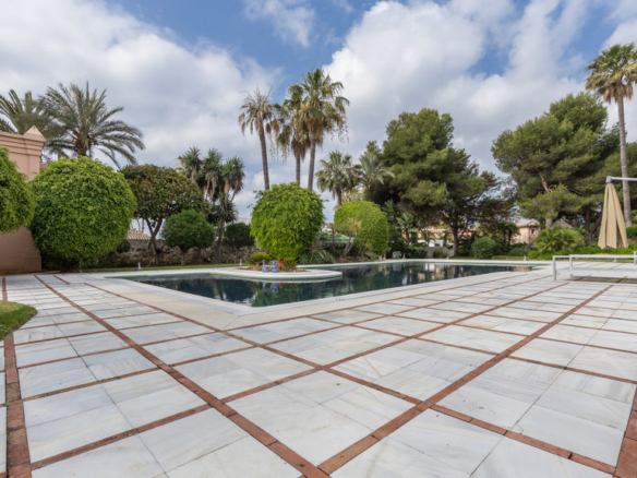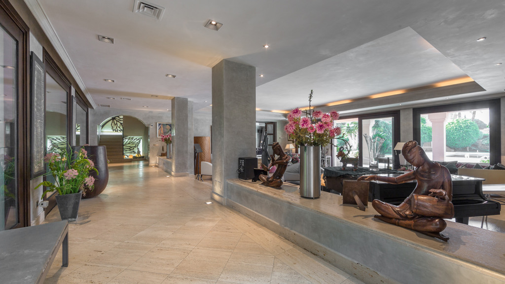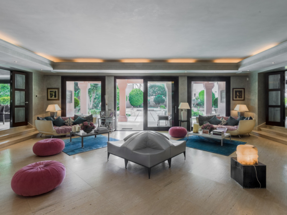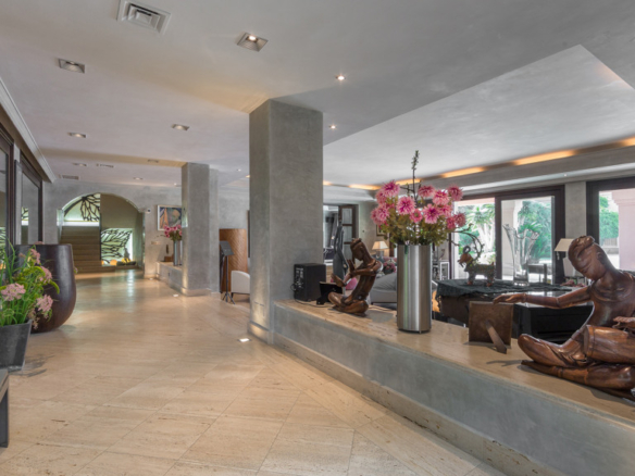 Stunning second line beach villa in the best area of the New Golden Mile, built at the palatial level, completely renovated with all the quality and luxury accessories possible.
