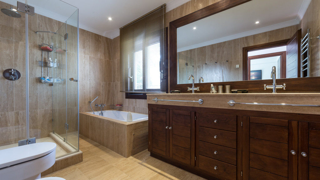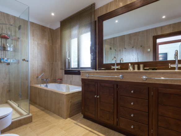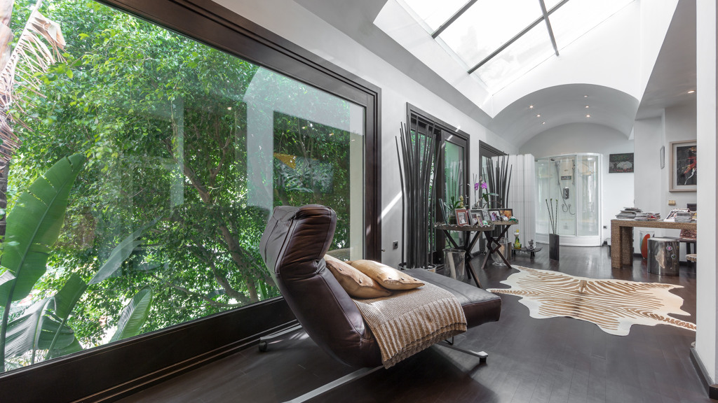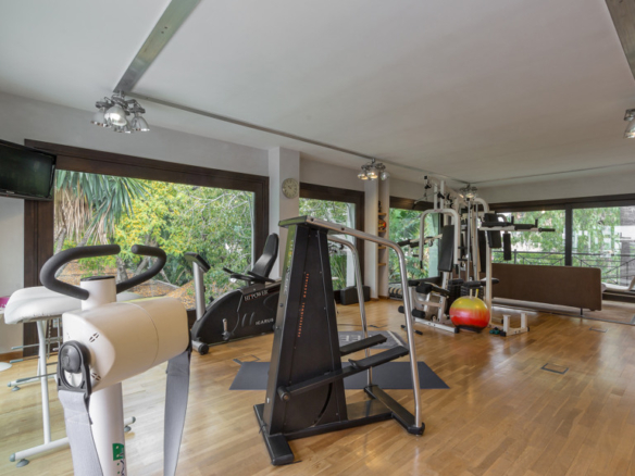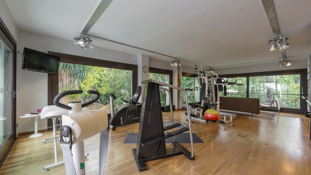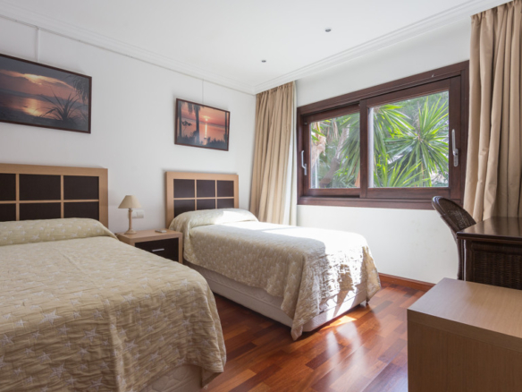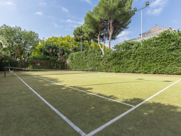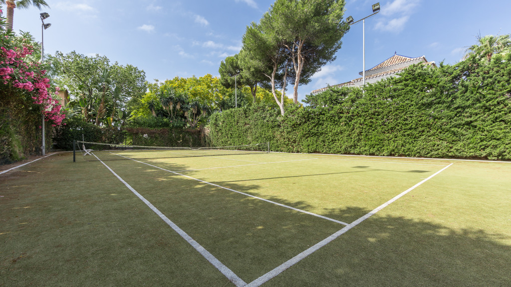 The pool of 25 x 10 meters with its own waterfall is an exquisite part of the well-kept and well-lit gardens, with two wells of water, mature vegetation and fruit trees and a tennis court for all seasons on artificial grass with automatic irrigation system and fully illuminated