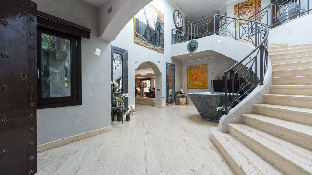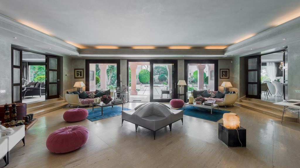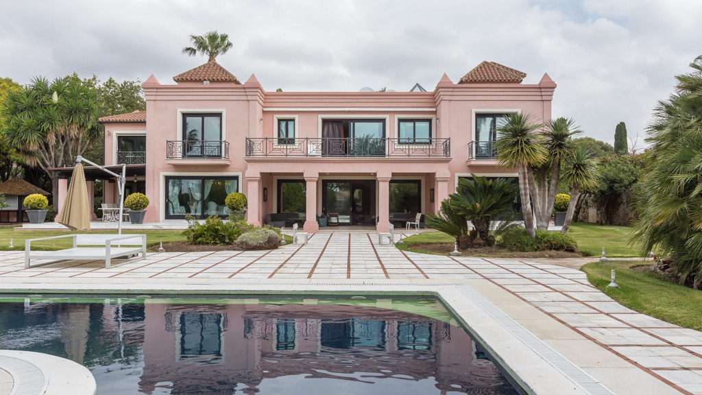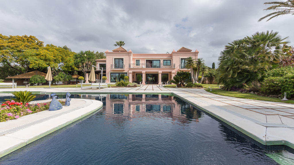 Villa house in New Golden Mile with a built size of 1,070 m2 in a plot of 7,416 m2 distributed in 2 floors. Cuenta con 11 bedrooms,12 bathrooms,2 living rooms,2 kitchens,facing South,6 garages