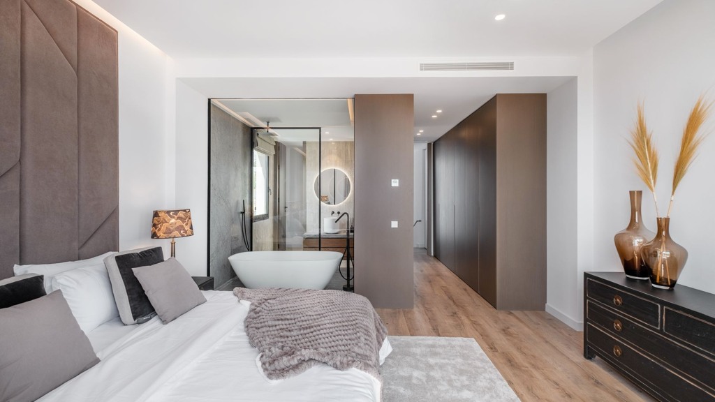 Located a 10-minute drive from Puerto Banús and its beaches, Paraíso Alto is a sought-after residential enclave known for its lush green landscape and panoramic views, offering a balance between exclusivity and accessibility. This villa blends seamlessly into its surroundings with serene sea views and a sense of privacy enhanced by the area’s distinctive Ibizan-inspired architectural style. In Paraiso Alto, properties range from contemporary villas to classic Mediterranean homes, creating a cohesive and diverse neighbourhood that appeals to those who appreciate a tranquil, high-end environment, close to essential amenities and leisure options.