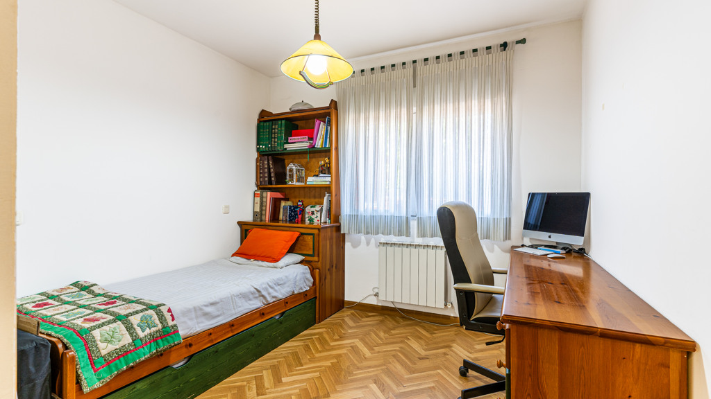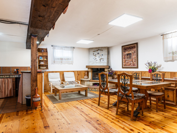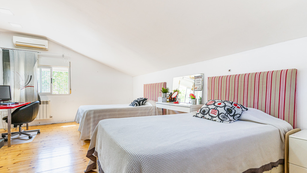 The layout of the villa is designed to maximize comfort and functionality. On the main floor, you will find a spacious 40 m² living room with direct access to a 20 m² terrace, offering unbeatable views of the garden and private pool. It also features a modern designer kitchen, three bedrooms (including a 40 m² suite with a dressing room and full bathroom), and an additional bathroom. The first floor houses two spacious bedrooms with built-in wardrobes and a full bathroom.