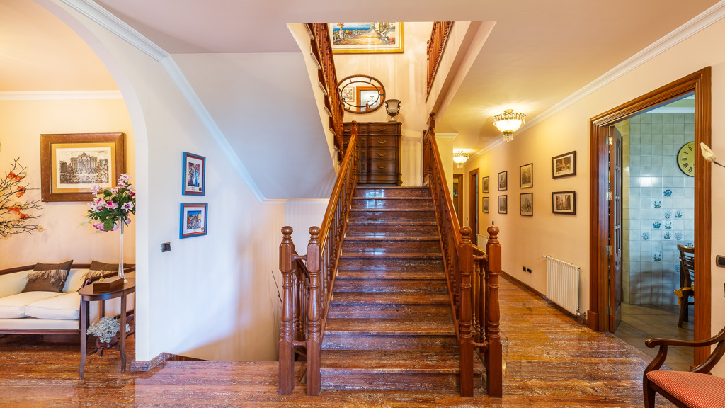 The first floor has a master bedroom with dressing room, en-suite bathroom and balcony. Two children’s bedrooms sharing one bathroom, both with built-in wardrobes and large windows. Two further double bedrooms with another bathroom complete the floor. In addition, one of the double bedrooms has a loft and a private balcony.
