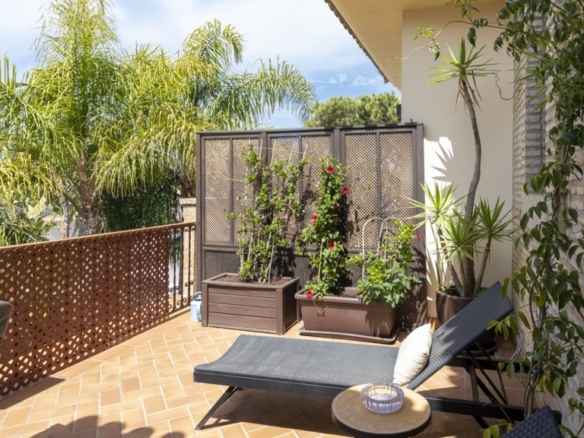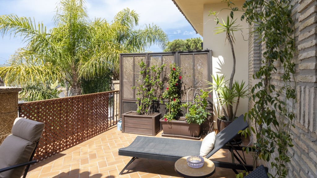 The exterior is not far behind: a magnificent private swimming pool and a well-kept garden surround the property, creating a perfect space to enjoy the Mediterranean climate. In addition, there is a terrace ideal for outdoor gatherings and a garage space included in the price. The property also has central heating and air conditioning, ensuring maximum comfort all year round.