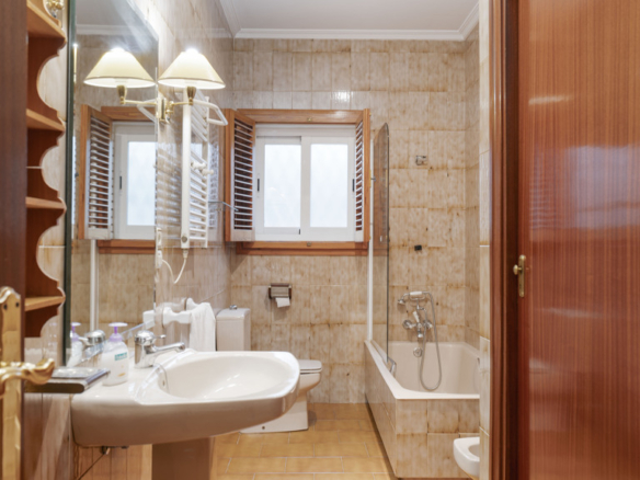 Ground floor of 260 m² with a large living room with fireplace, divided into two areas, which is accessed from the main door. It consists of four rooms, the main one being a suite, plus two full bathrooms and a toilet, dining room and kitchen with access to the outside.