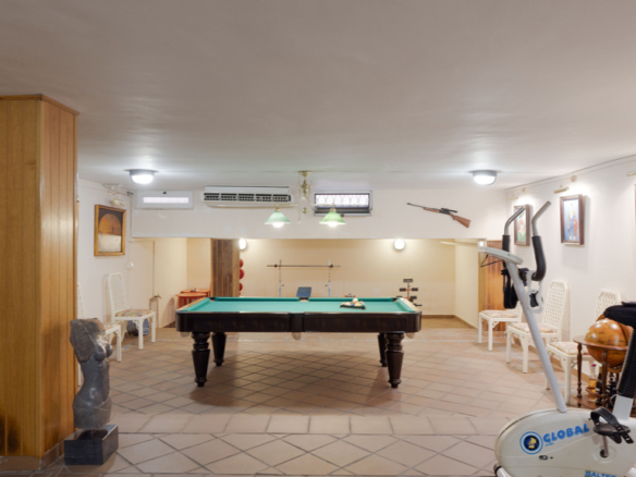 Basement floor of 90 m² where we find a relaxation area, games, or gym, as well as a storage room and where the water accumulator is located.