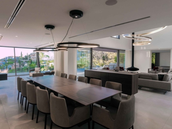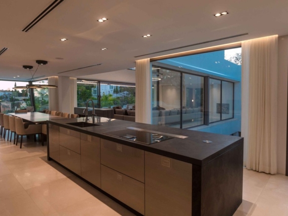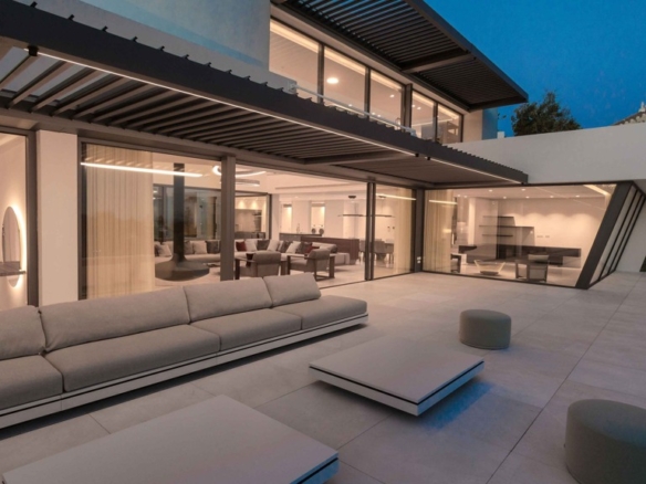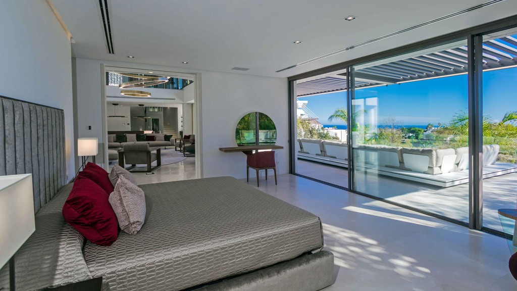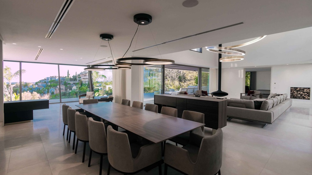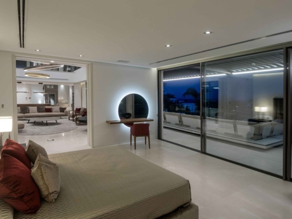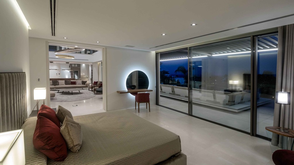 The MARBEPOR/MARFLOT marble floors measuring 90 x 90 cm add a touch of elegance and durability. The bathrooms, clad in Tino’s white cream marble and natural Oasis Brown stone, create an unparalleled luxurious ambiance. Outside, the IPE wood decking in the pool solarium and the non-slip floors offer both beauty and functionality.