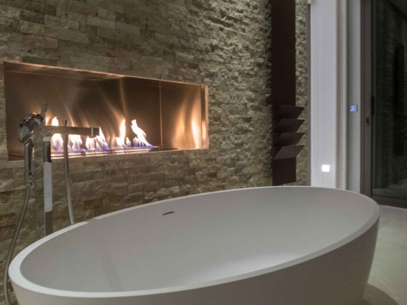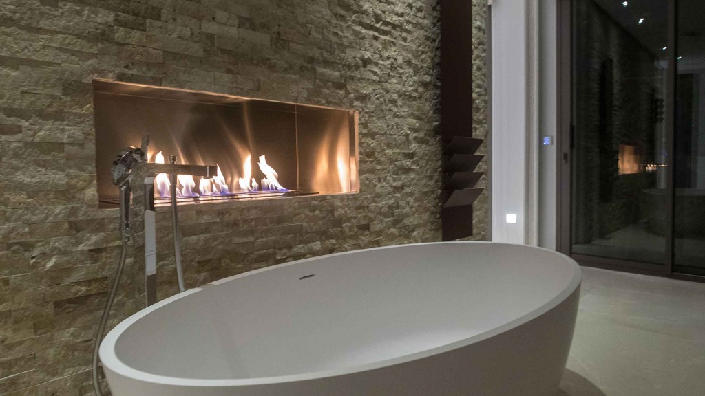 The traditional brick facades with 8 cm XPS thermal insulation panels guarantee energy efficiency and comfort. The interiors are adorned with brick partitions finished in perlita and false ceilings made of laminated plasterboard. Imagine enjoying a cozy evening by the Gyrofocus fireplace in the living room or the Glammbox evo 1200 bioethanol fireplace in the master bathroom.