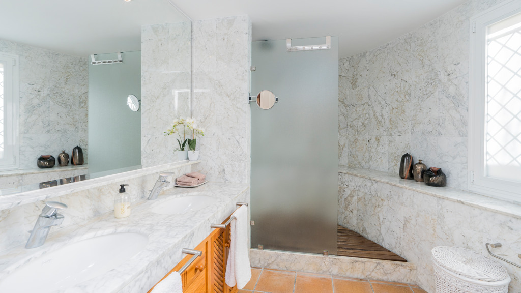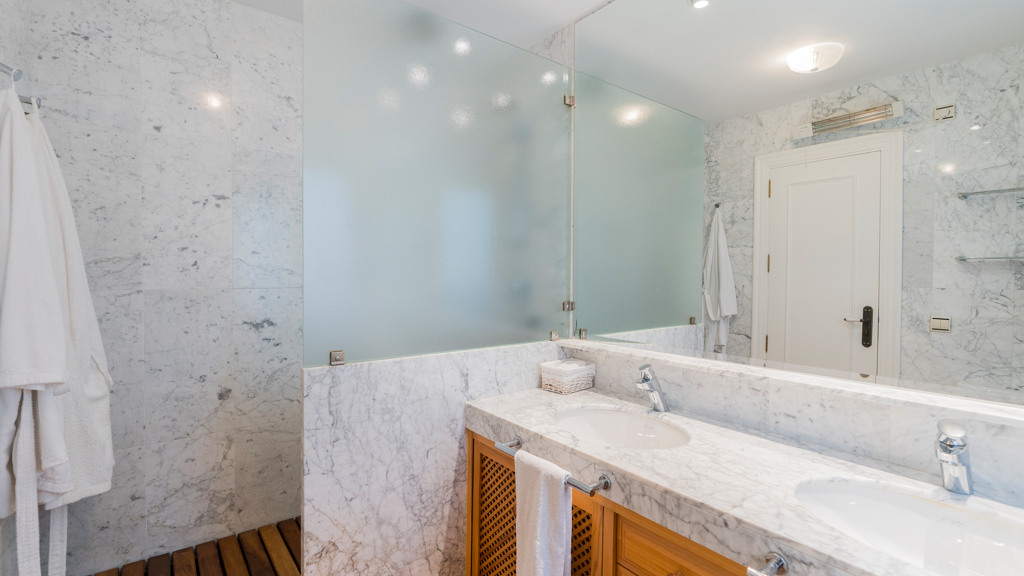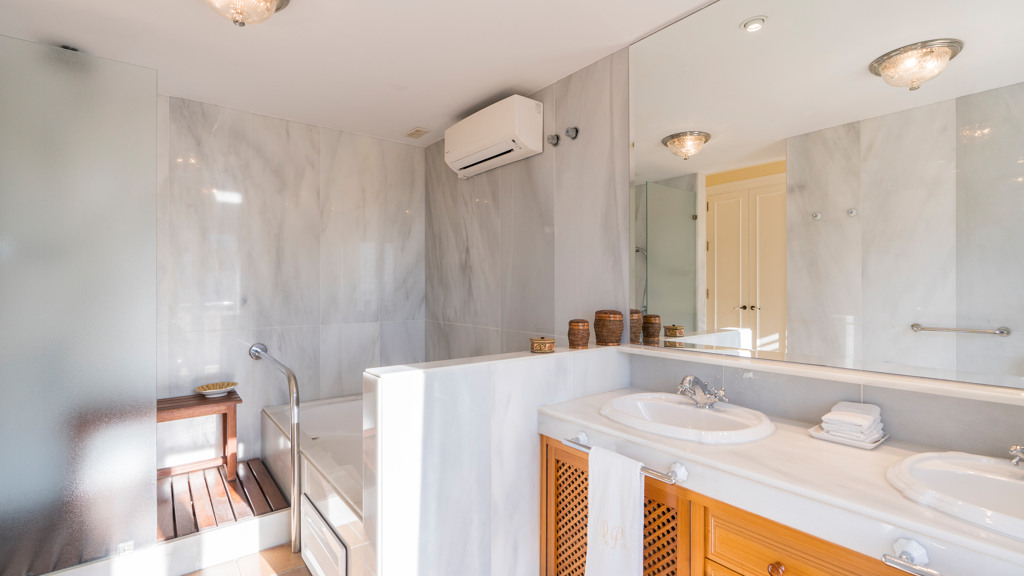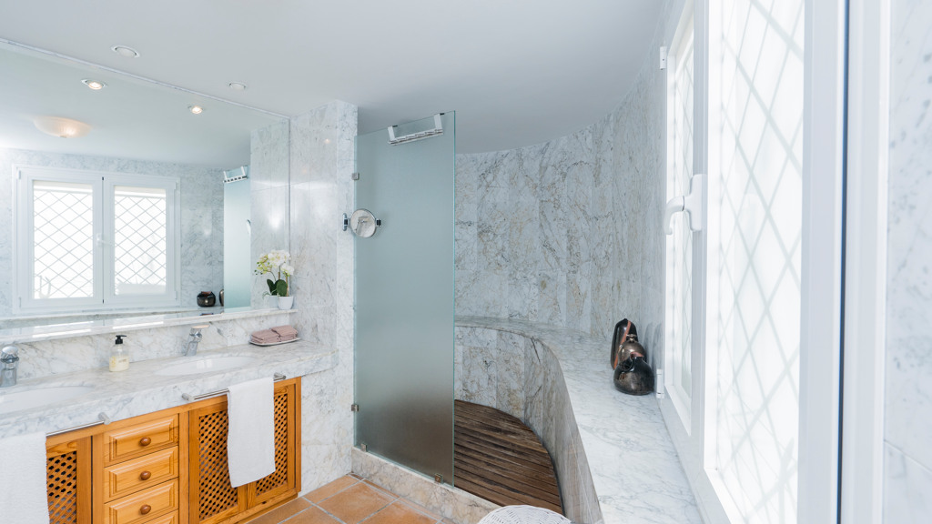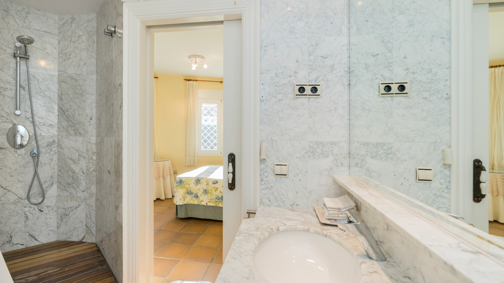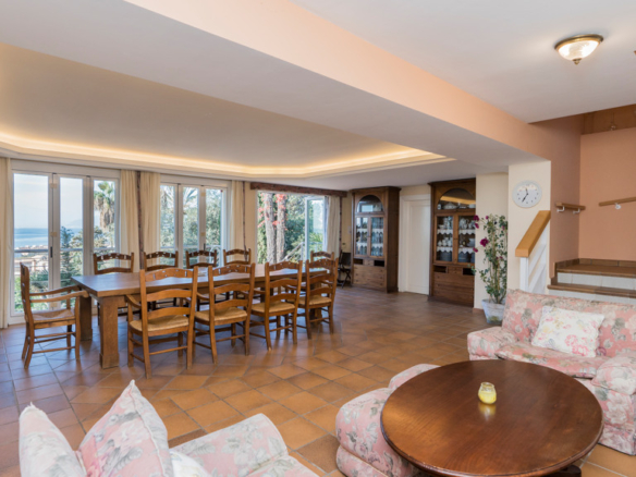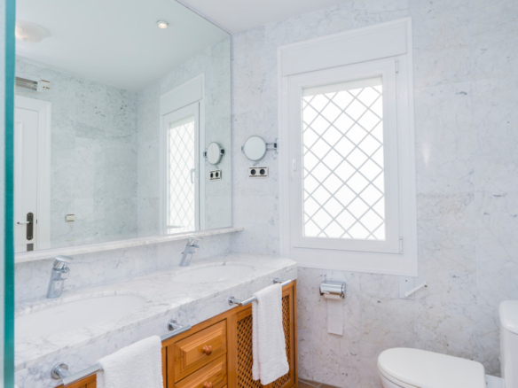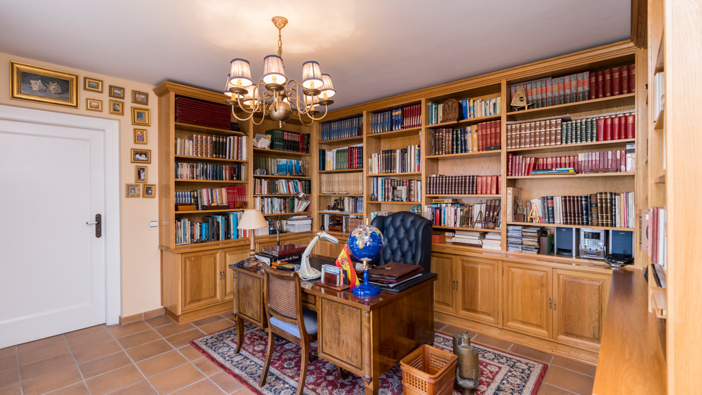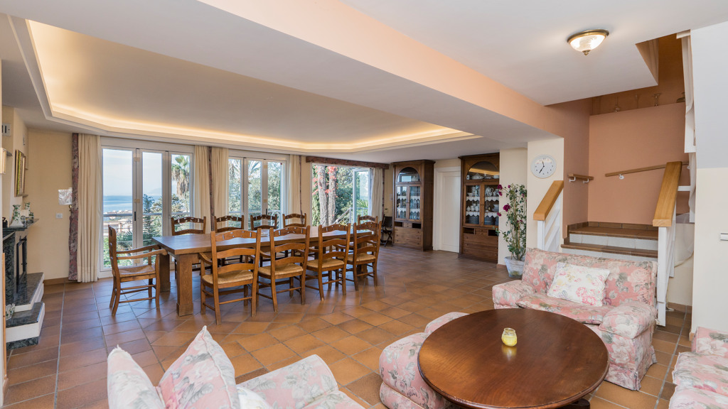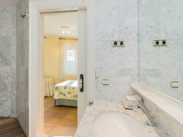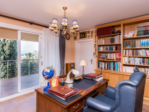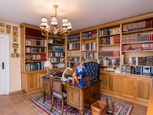 The main house is distributed over two floors, with the upper floor featuring four double bedrooms, along with the master bedroom which has a dressing room, bathroom, sauna and independent access to a majestic terrace. In addition, there is a living room with fireplace, an office area with dining room, an elegant office and a parking area. The lower level, with direct access to the lush garden, houses a spacious living room with fireplace ideal for family gatherings or entertaining, an integrated kitchen as well as two further double bedrooms with en-suite bathrooms, creating a perfect space on this level for enjoyment and entertainment.