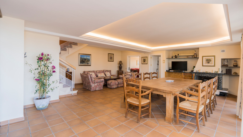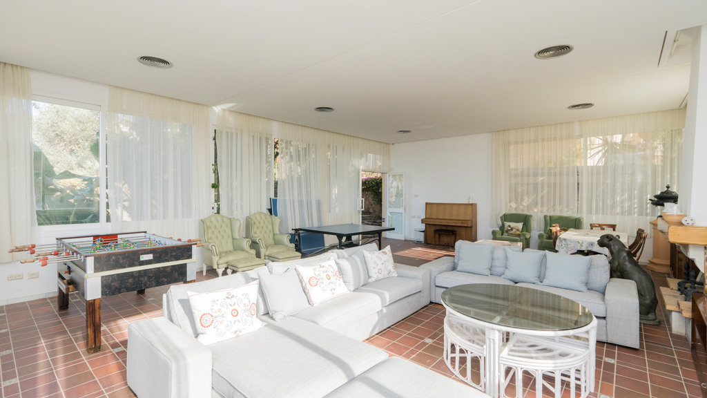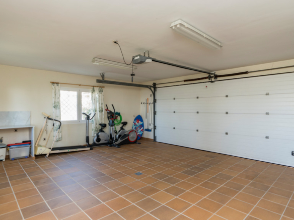 The equipment of this villa is complete and luxurious. In the garden area, residents will enjoy a swimming pool for adults and another one for children, extensive green areas, manicured gardens, a paddle tennis court, a barbecue area, a wine cellar and a beautiful open-plan multipurpose room. This versatile room can be used for recreation and leisure for both adults and children. In addition, the property has a large parking area for several vehicles.