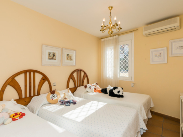 In addition to this construction we enjoy a separate guest house with approximately 170 square meters built. This space has a cosy living room with terrace, kitchen, bathroom and two bedrooms on the upper floor with the lower part being open-plan and used as a leisure area with bathroom and also providing direct access to the garden and swimming pool, providing a perfect environment for fun and relaxation.