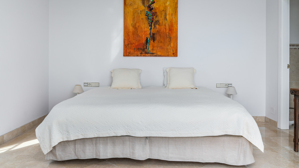 On the second level you will find a large master bedroom with its own private terrace and spacious bathroom with open shower and bathtub.On this floor you will also find an additional guest bedroom with bathroom.