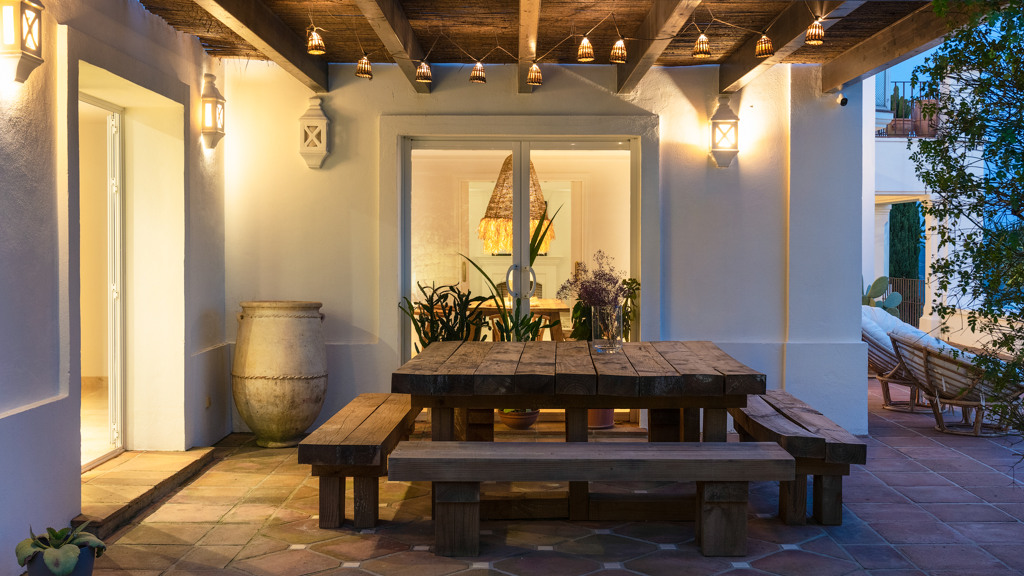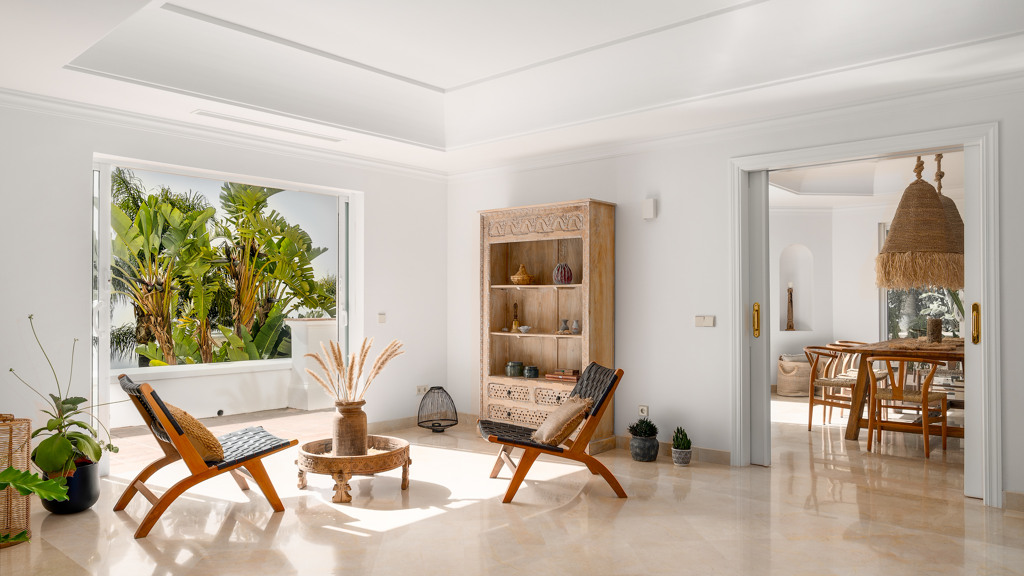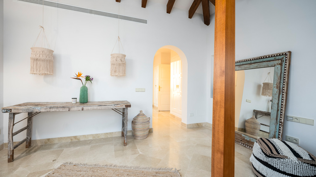 On the ground floor, to the left of the hall you will also find two large bedrooms and, on the opposite side, there is the recently renovated kitchen with Gaggenau appliances and a utility room. The interior design of this property is tastefully maintained, the balance between Andalusian style with a perfect dose of bohemian essence.