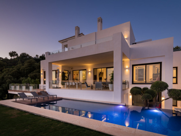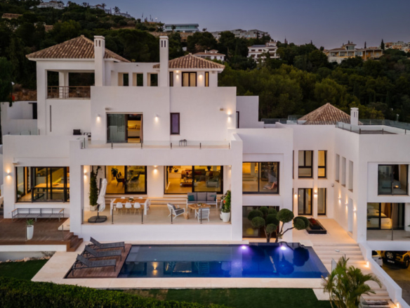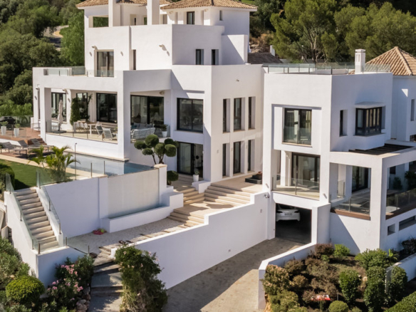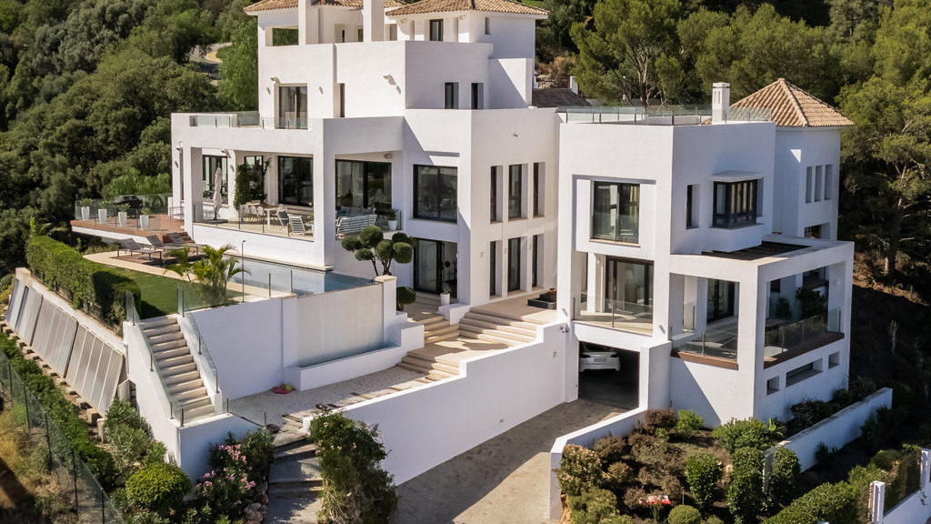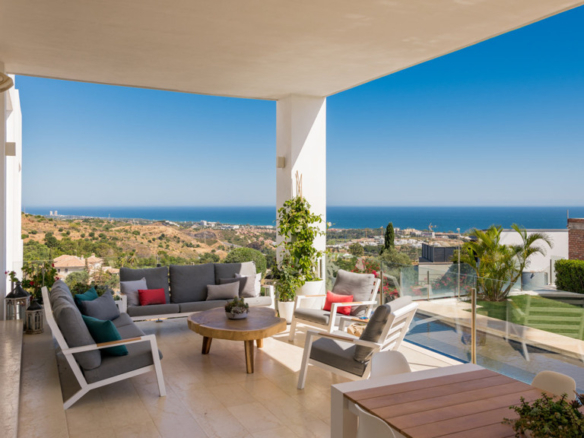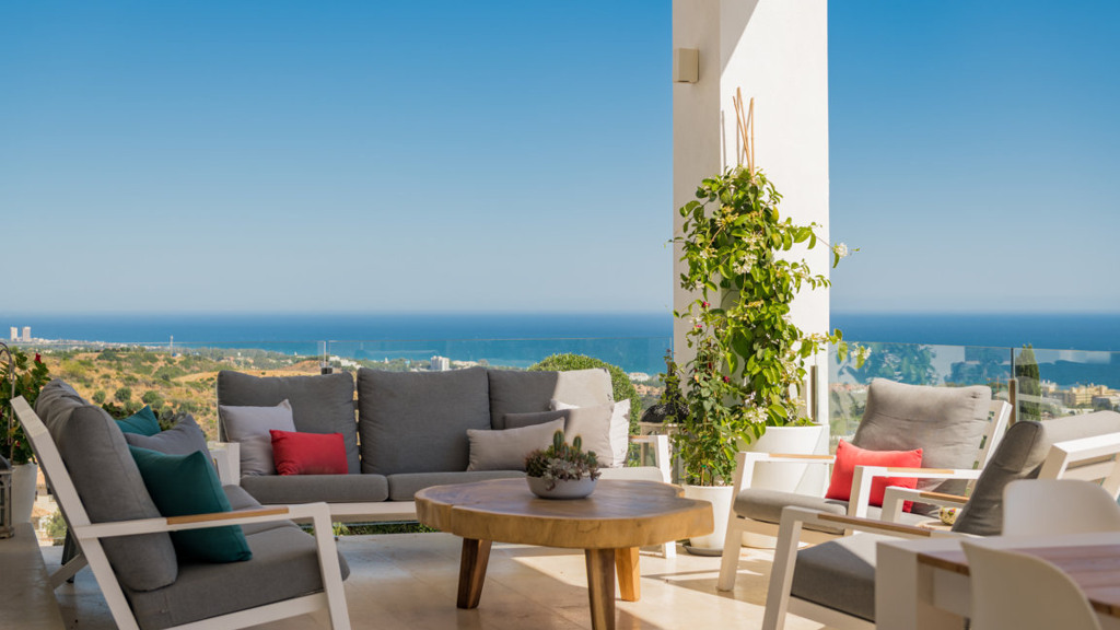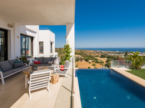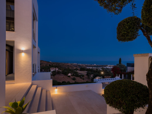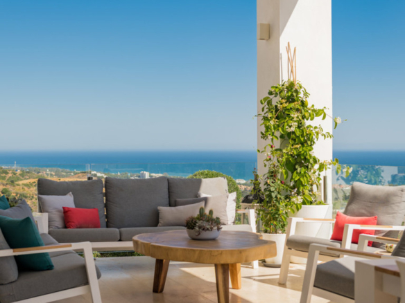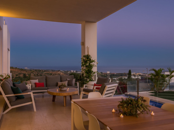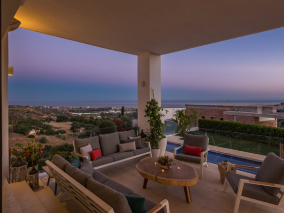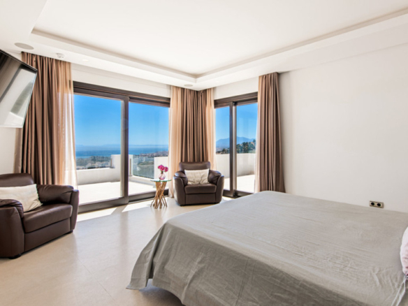 The villa has been built with a robust construction, modern architecture and with qualities that will make you really enjoy each stay of the property. The main orientation is South, but it also enjoys the morning sun and the sunsets over the bay of Marbella, a very bright property! The views are panoramic to the sea overlooking the bay of Marbella, Gibraltar and the entire north African coast. There are sea views in all rooms.
