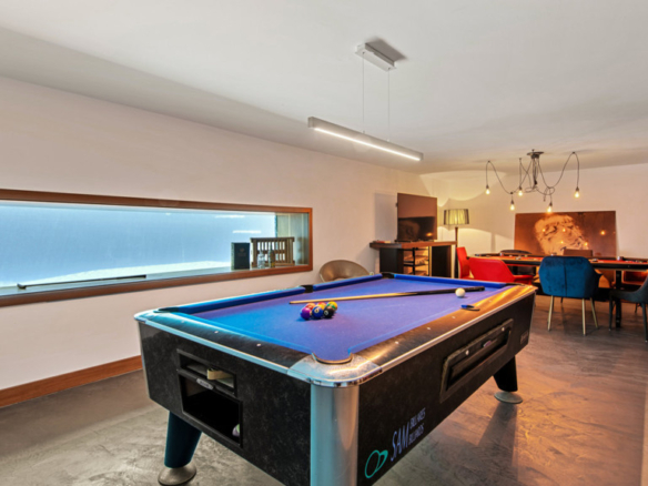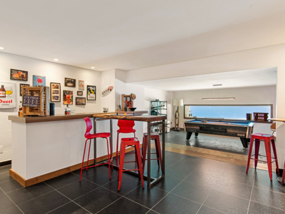 In the lower part we find: a steam bath, a gym, a cinema room, a toilet, a large games room with a bar, a billiards area, and a poker table. On the same floor we find 2 bedrooms with their bathrooms en suite and their private terraces. On the other side, a small games room, a laundry and ironing room and the machine room. Further down there is a storage room and the garage for 6 cars.