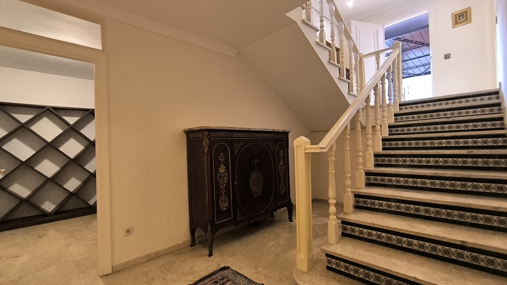 The basement includes two additional bedrooms, one of them with en-suite bathroom for the staff, as well as the machine room, storage space and garage.