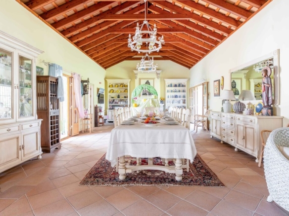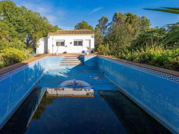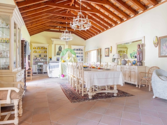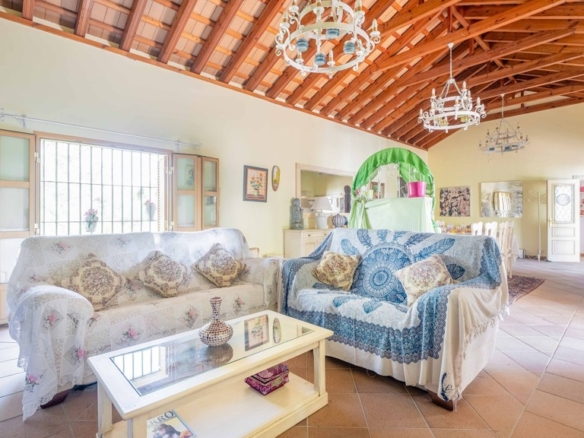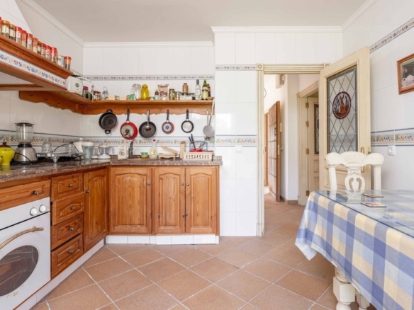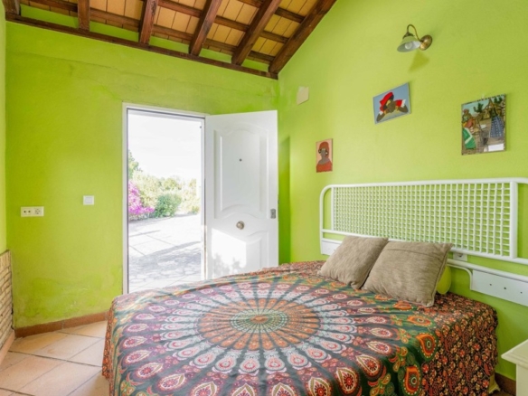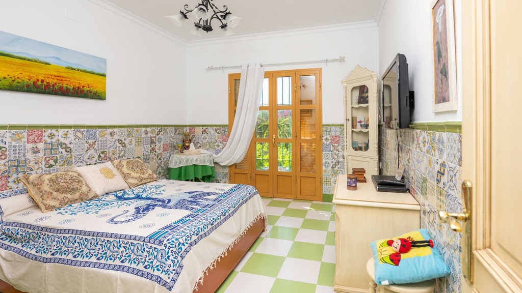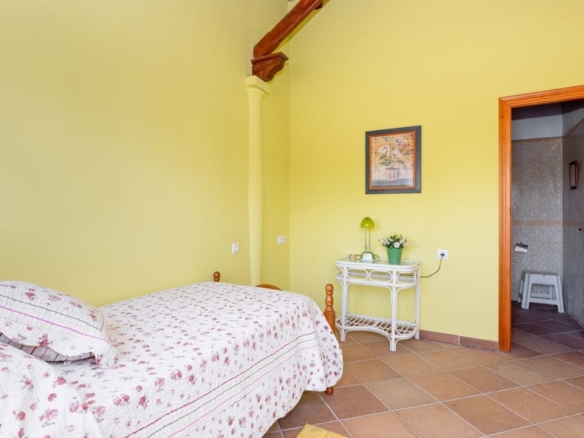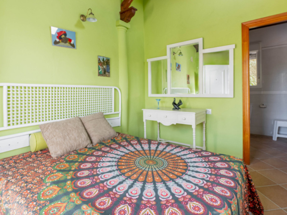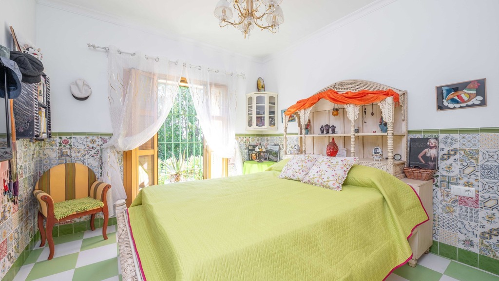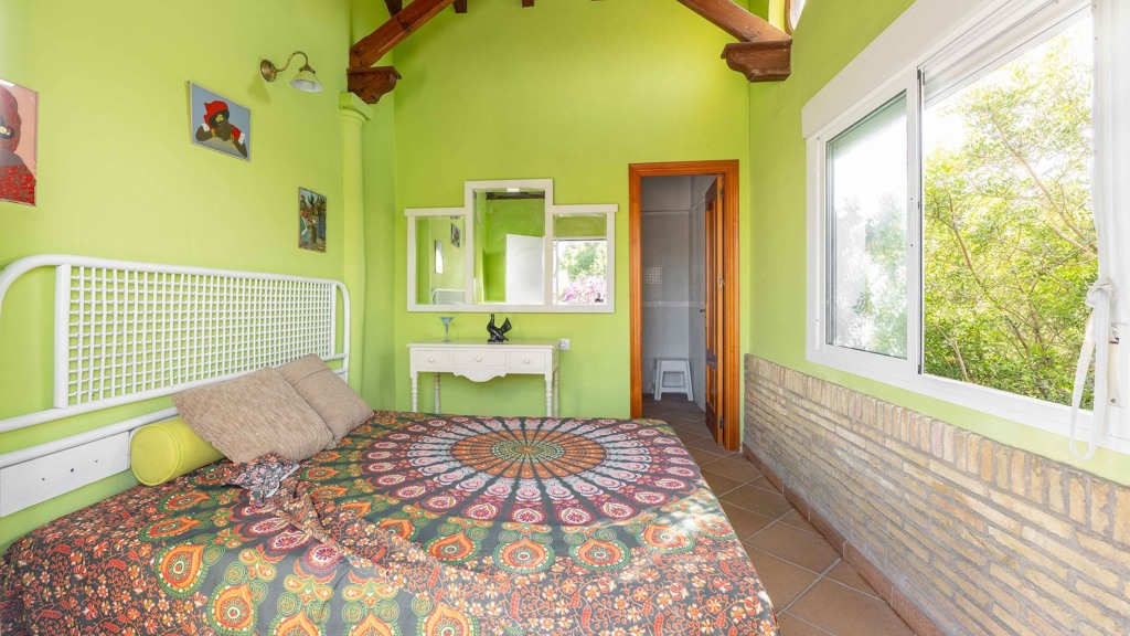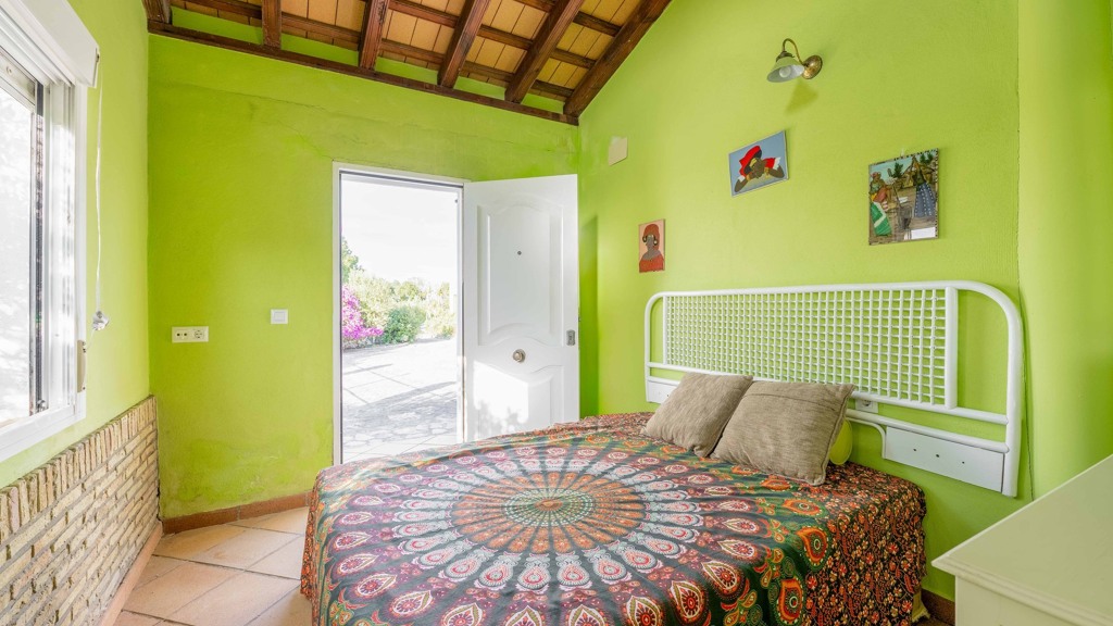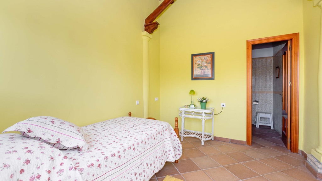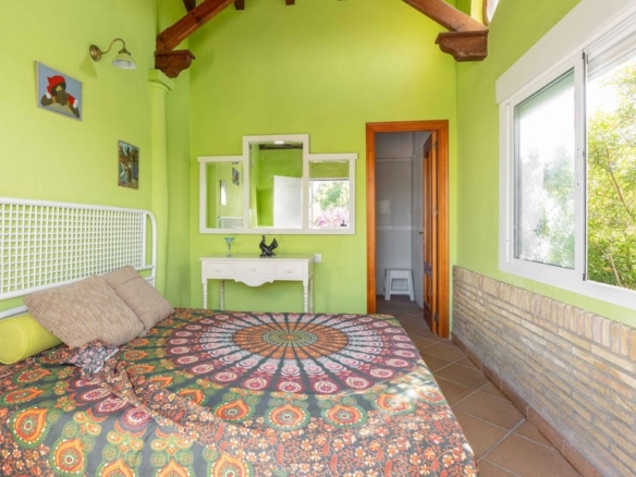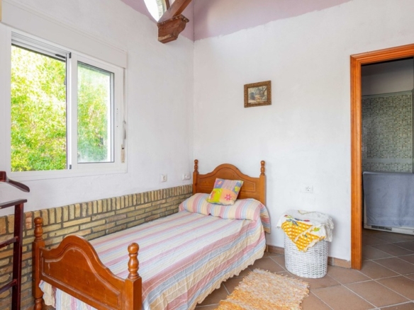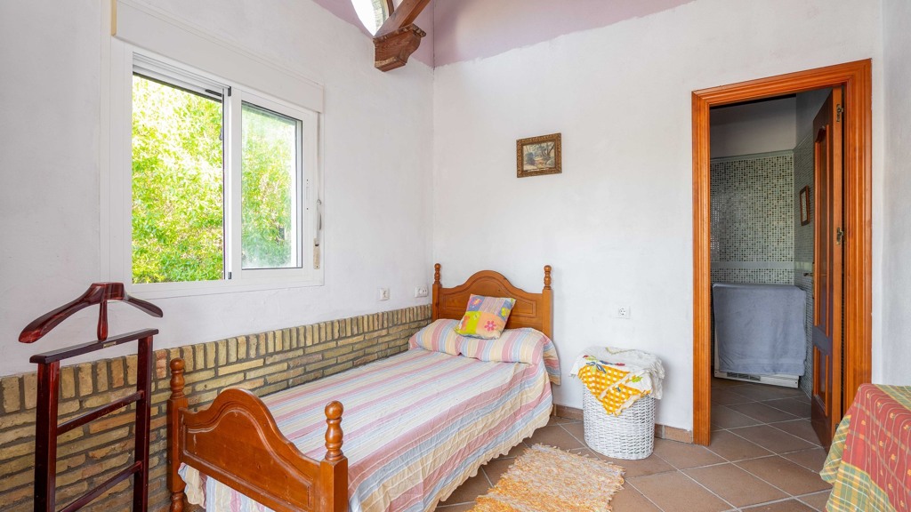 The farm has two built-up areas. The main area consists of a beautiful cortijo type building, a house with an annexed but independent construction and a swimming pool with another guest room. The main house is distributed in: Andalusian patio with covered porch, large living room with high ceilings with wooden beams, fireplace and double glazed wooden windows, a separate kitchen, two bedrooms and two bathrooms, one of them en suite. The adjoining construction consists of three guest bedrooms. Finally, in this area there is a construction next to the pool which is another room with bathroom for guests.